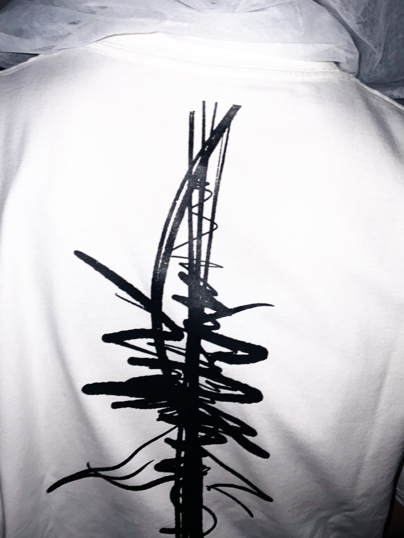 IDのシグネチャージャケット【SPINE STRUCTURE JACKET】の背面ディテールをアブストラクトに描いたロングスリーブTシャツ。