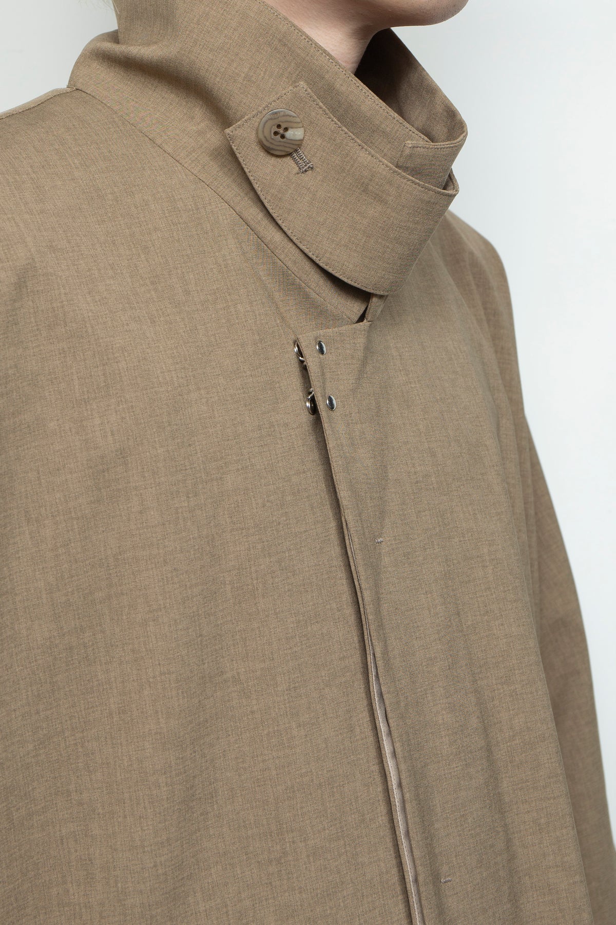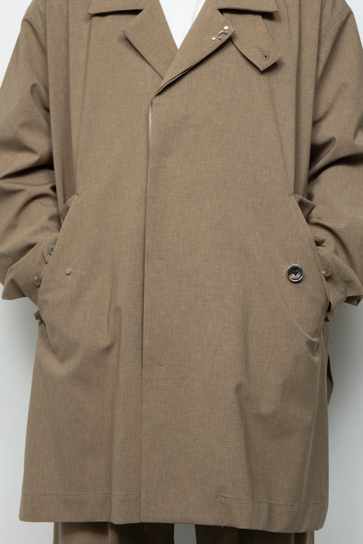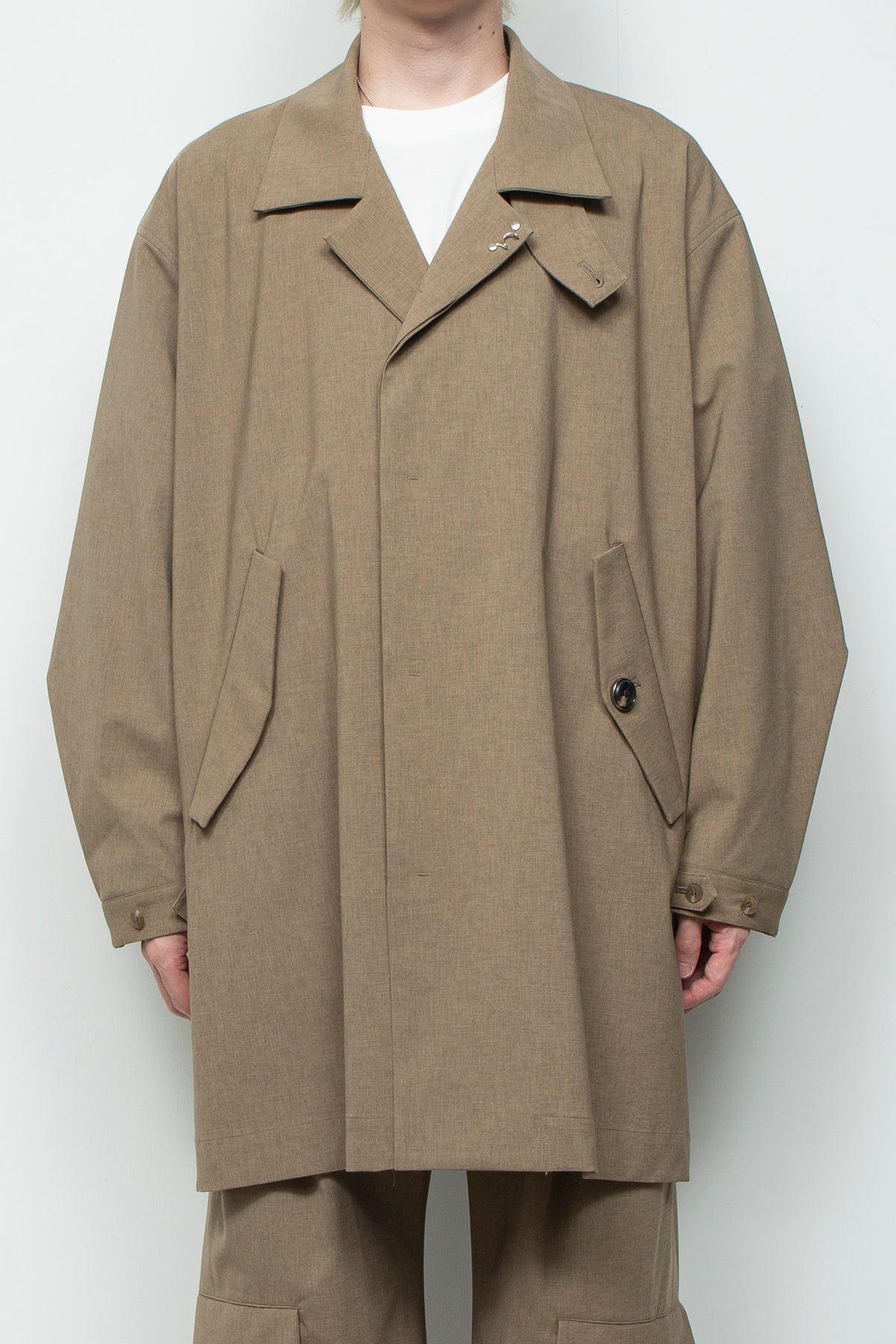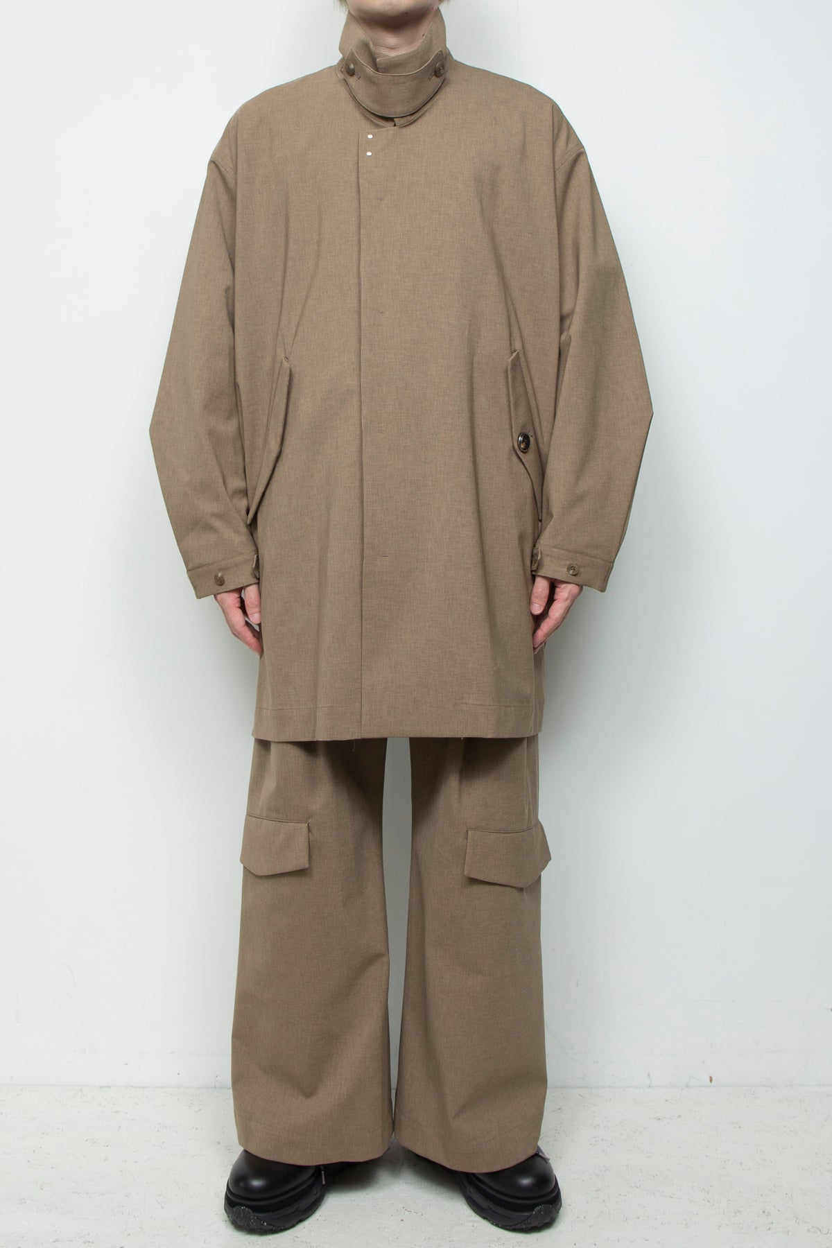 ボディはステンカラーコートをモチーフにしながら、シャツジャケットのような感覚でライトにそしてラフにご着用いただける設計を 心がけました。