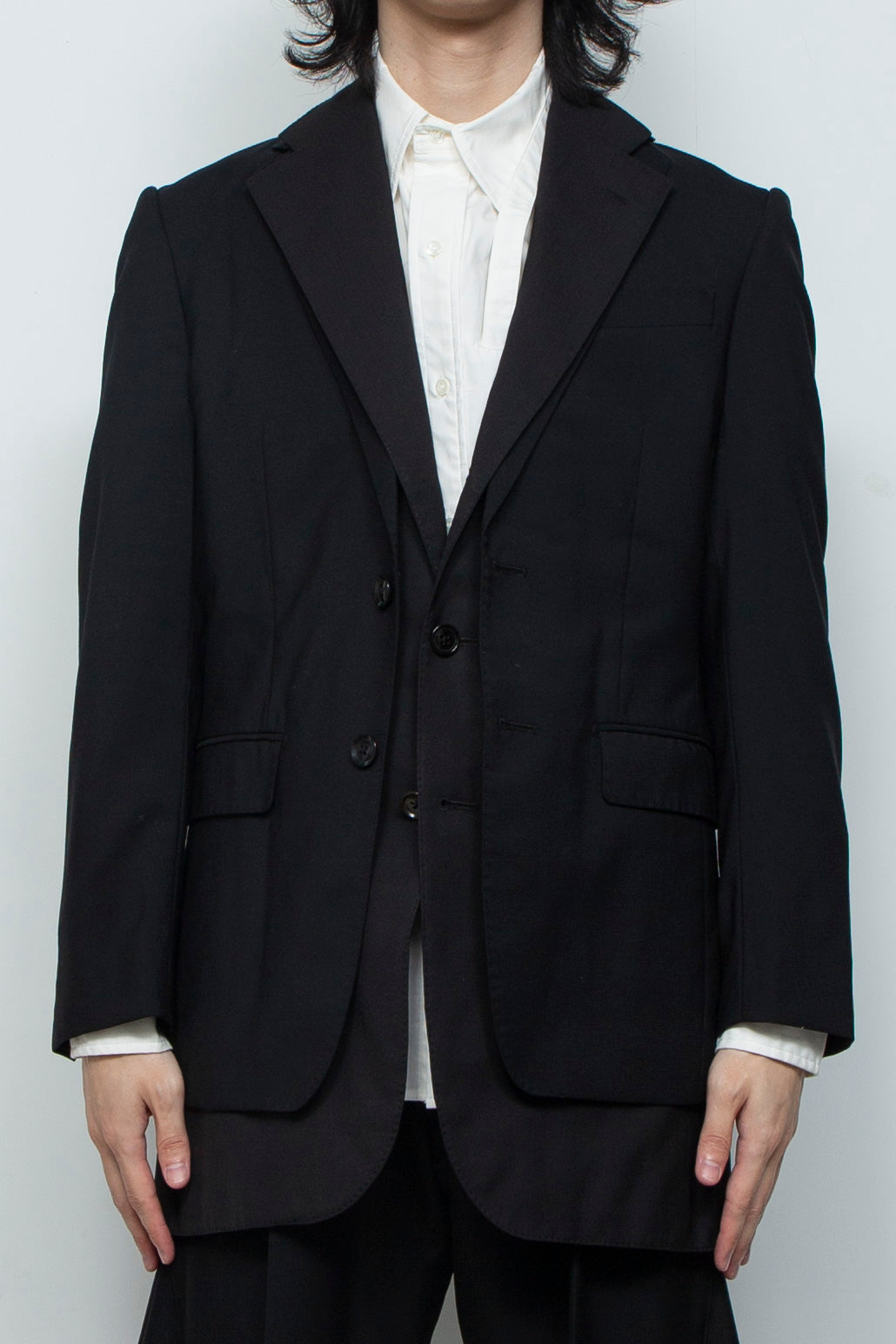 2種類のジャケットを使用し、後ろ中心で縦のラインでドッキングされたジャケット。
