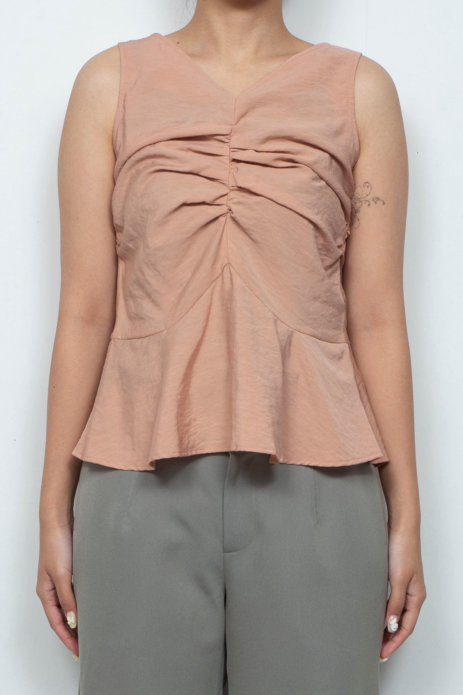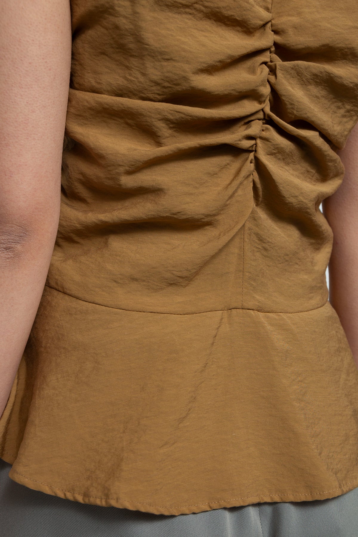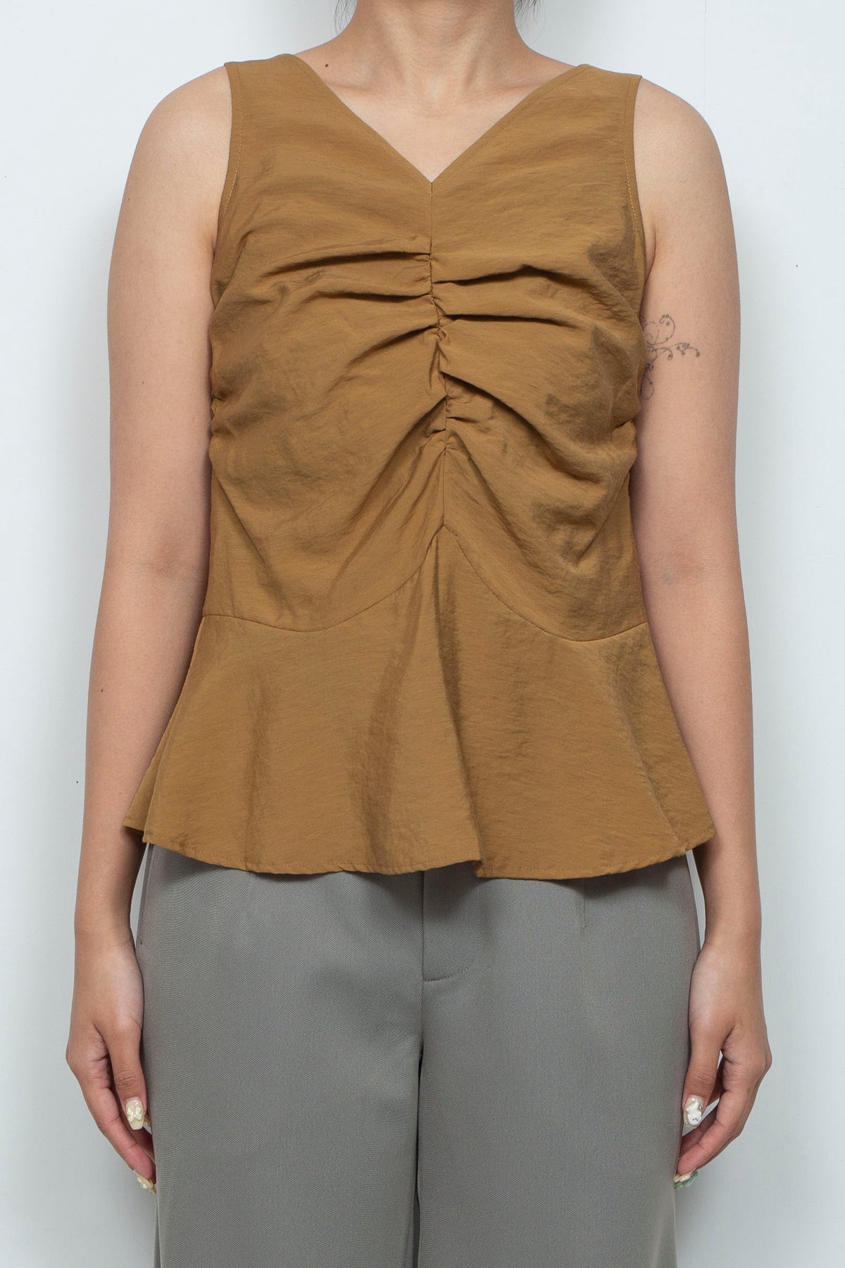 Front gather peplum hem top moca