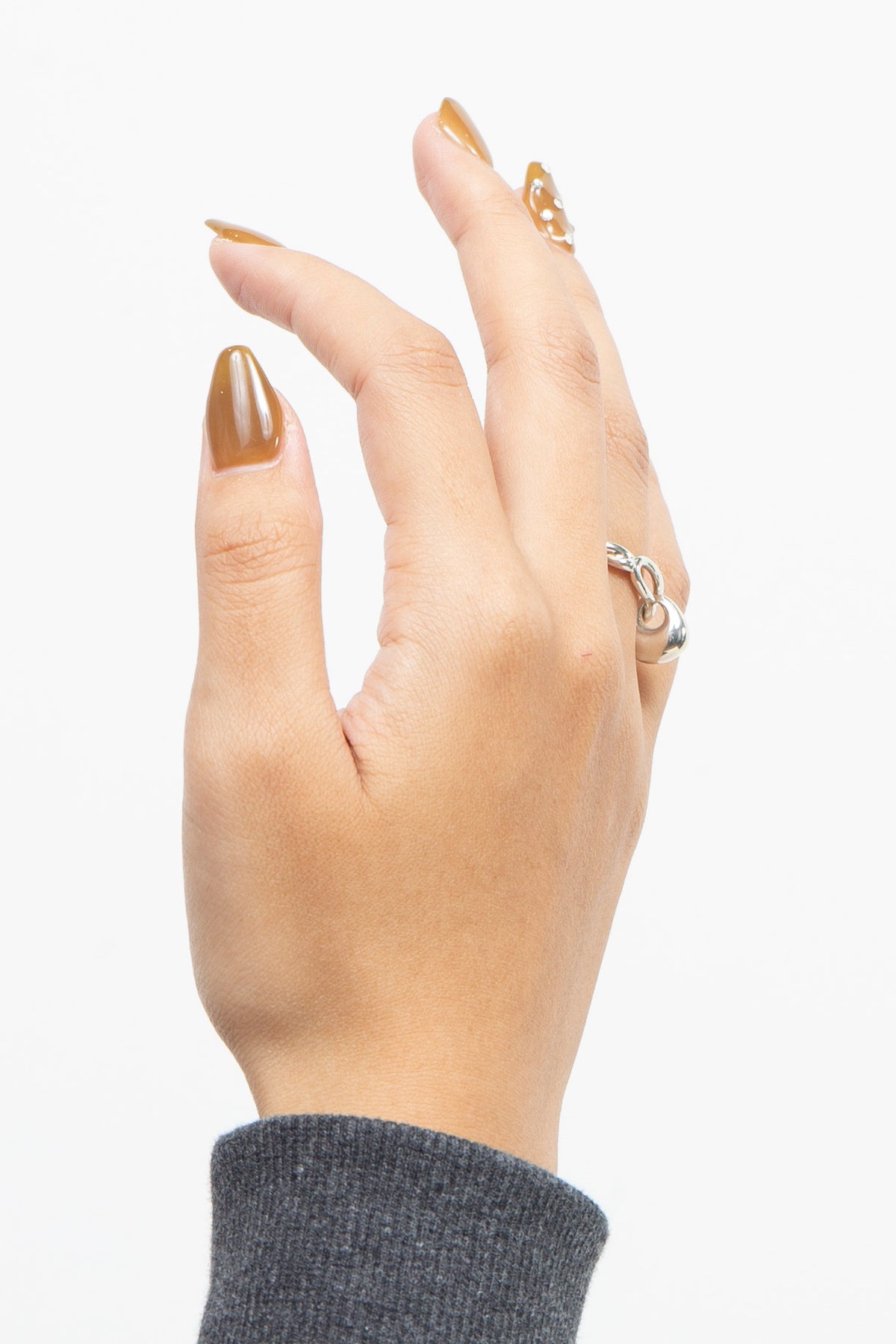With unevenly spaced silver arms, it creates a rhythm and pause along the finger.