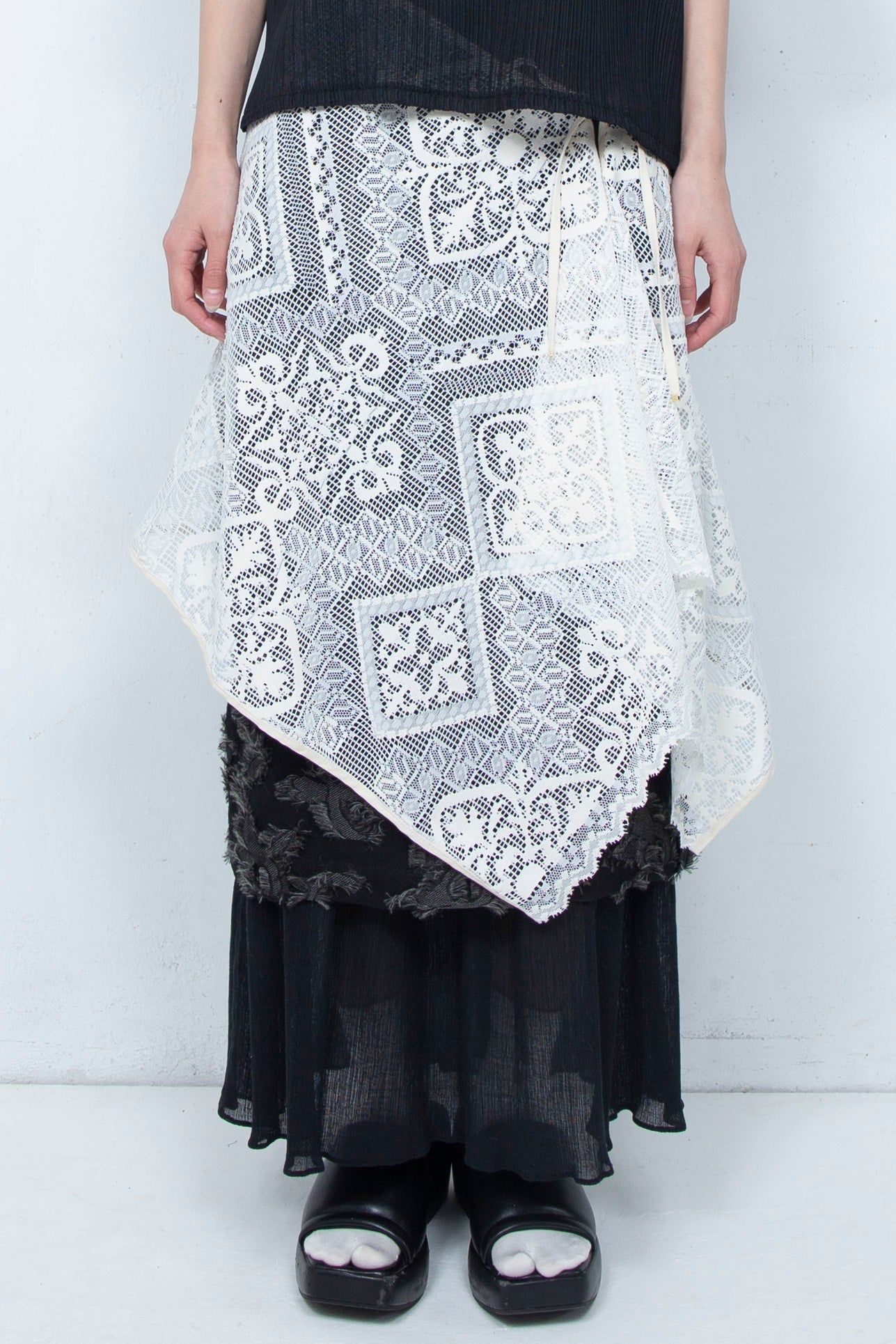 上に重なる短いスカートは、シャーリング部分を紐で調整することで、さまざまなシルエットを楽しめます。