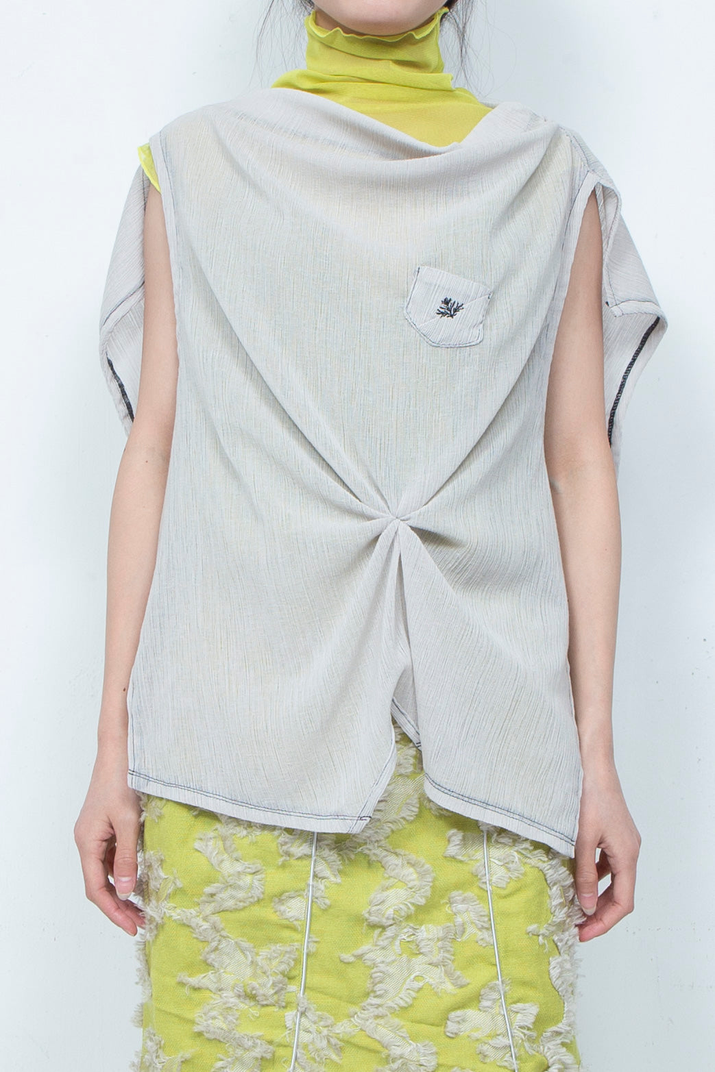 透け感のある軽いプリーツ生地を使用した半袖トップス。
