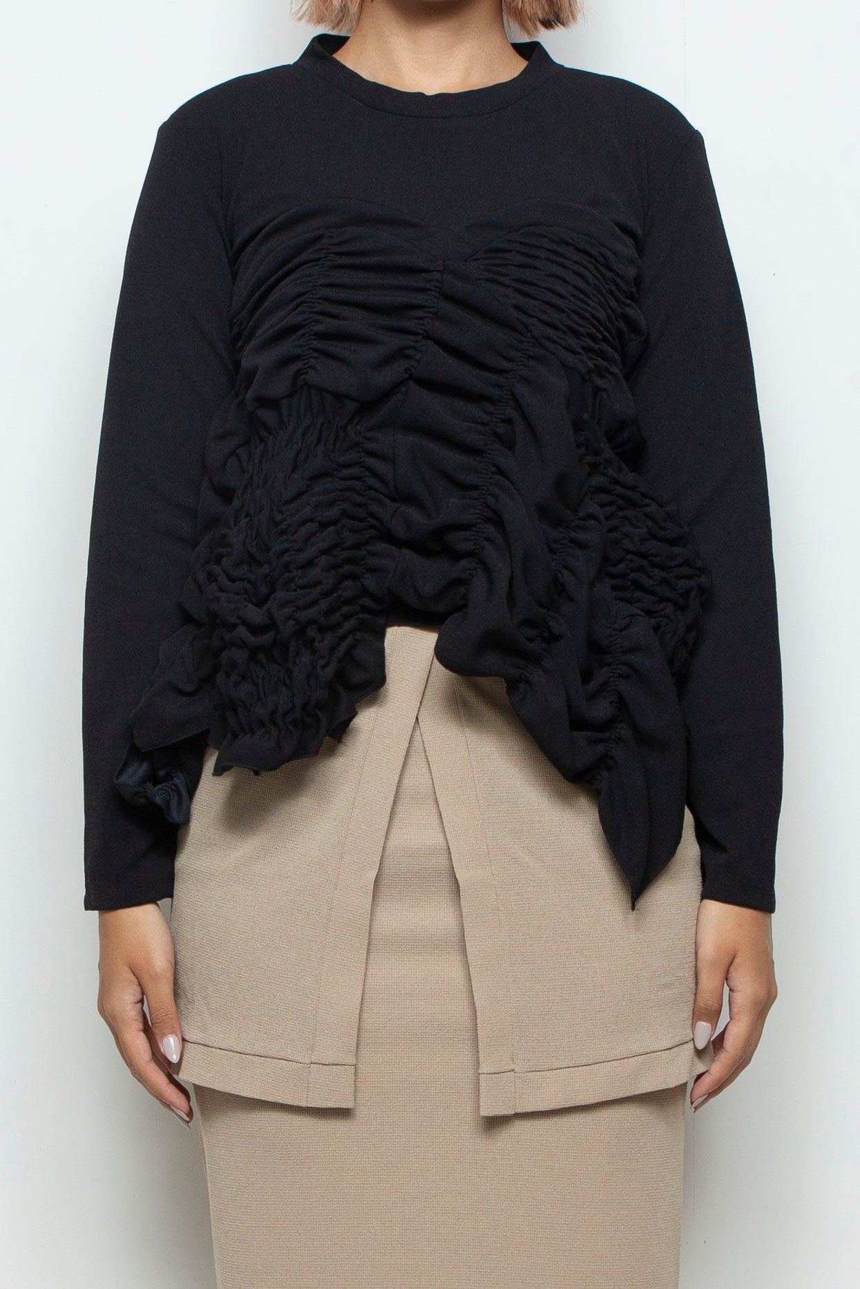 軽く透け感のあるポリエステルレースを2枚重ね、程良い透け感に仕上げたレーストップスです。別カラーのレースを重ねることで立体感のあるテクスチャーに。