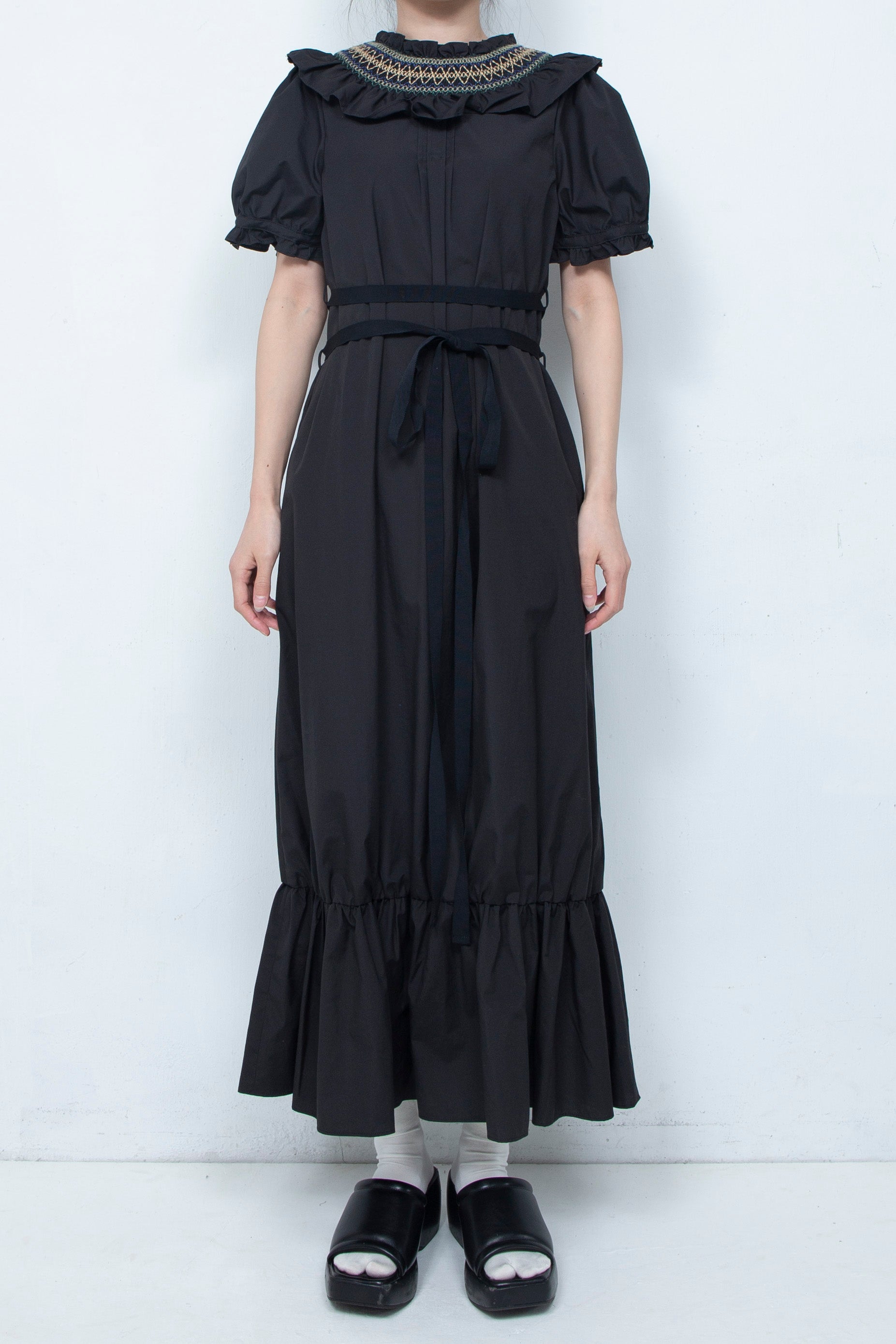 胸元のタックとAラインのパターンが全身をすっきりと見せ、ウエスト部分のリボンを調節することでシルエットのアレンジもお楽しみいただけます。
