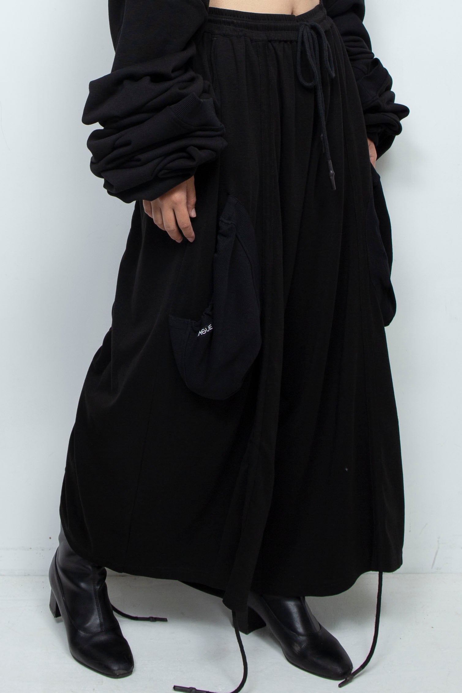BLACK OVERSIZED HOODED GATHERED DRAWSTRINGS SWEATSHIRT