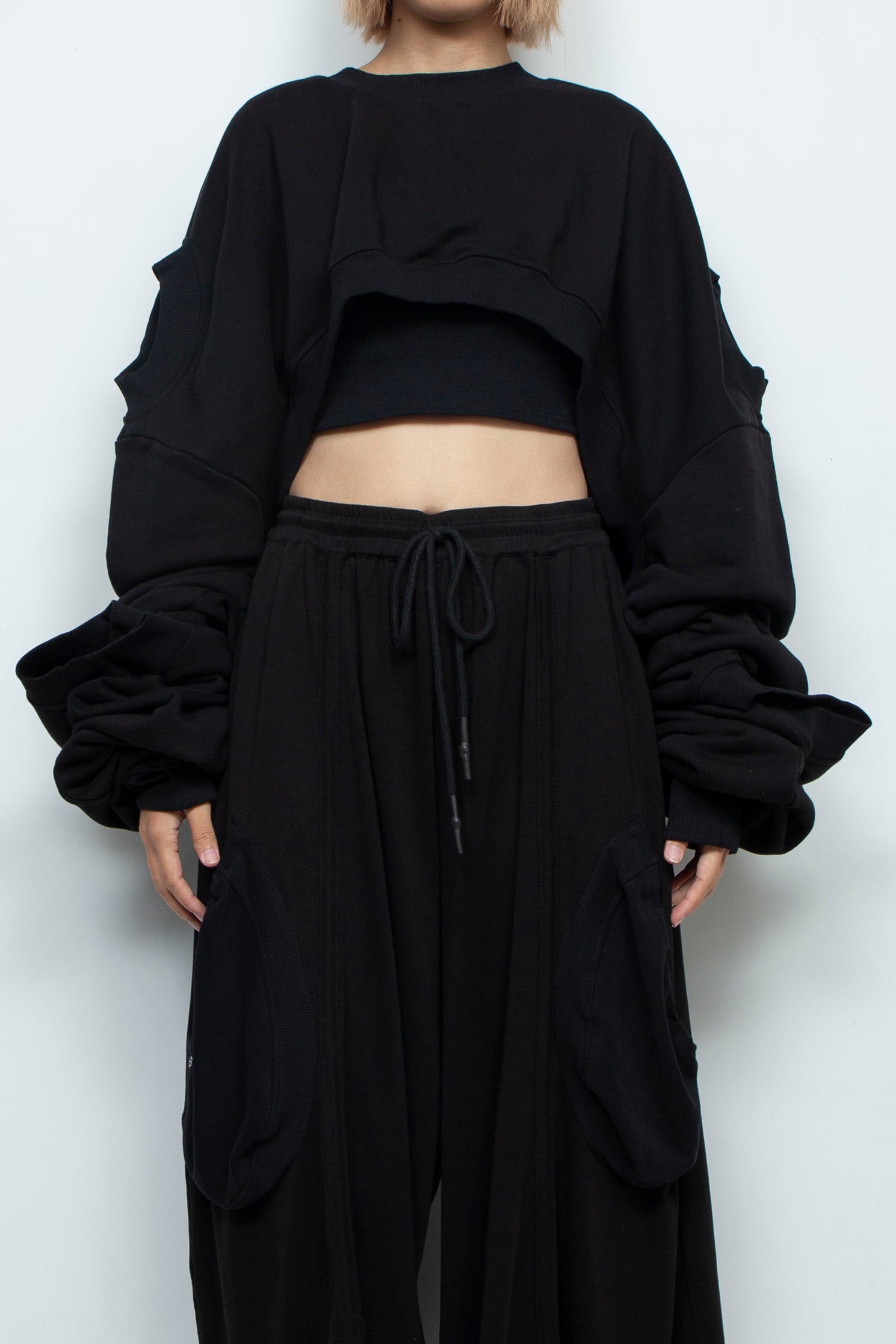 ゆったりとしたオーバーサイズのホワイトワイドレッグパンツ。コントラストの効いたブラックのサイドポケットが特徴です。柔らかなフレンチテリー素材を使用。