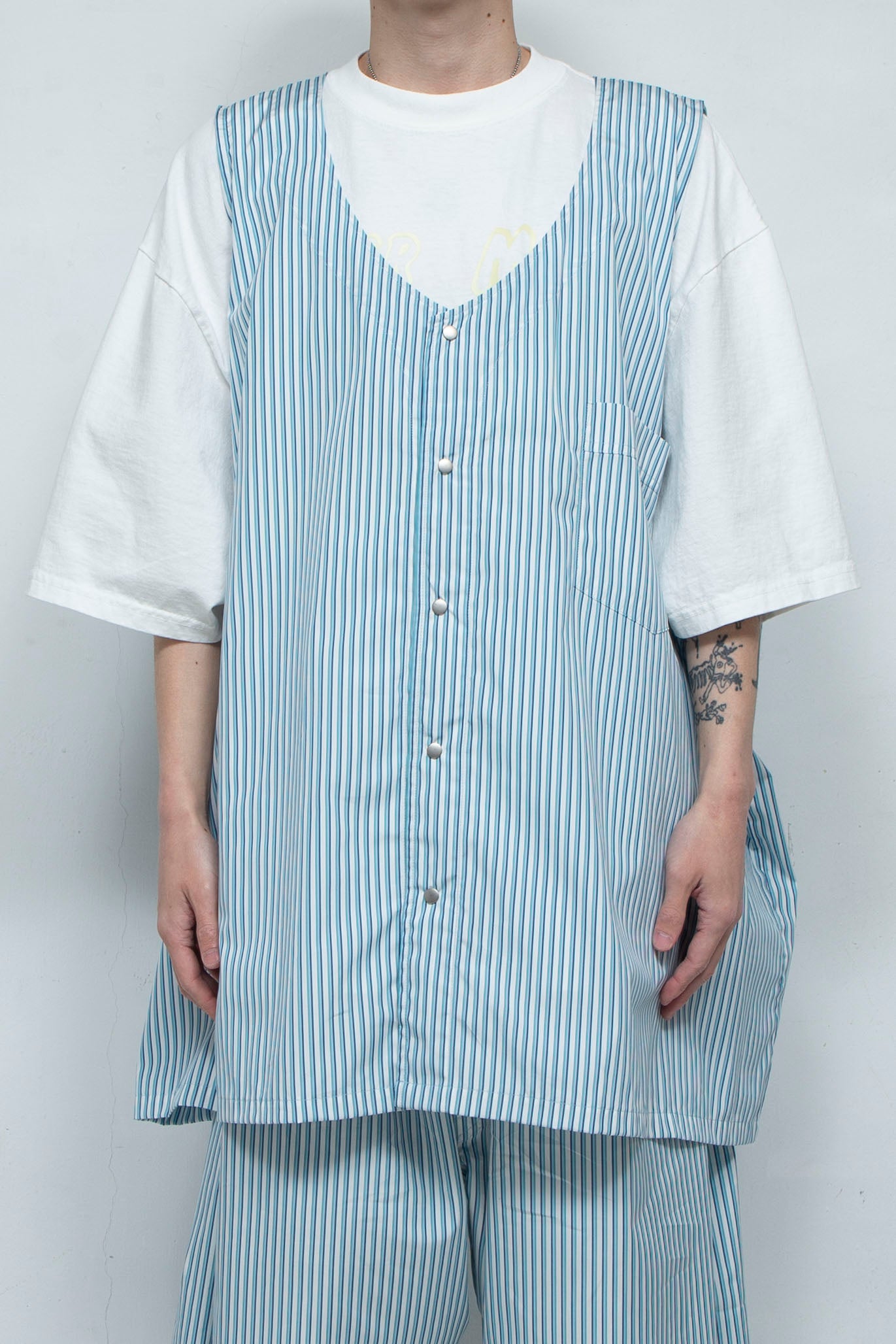 トーマスメイソンの高級シャツ生地を使用したノーカラーシャツ。オーバーサイズで様々なスタイリングをお楽しみいただけます。ベルト付きでシルエット変更可能です。