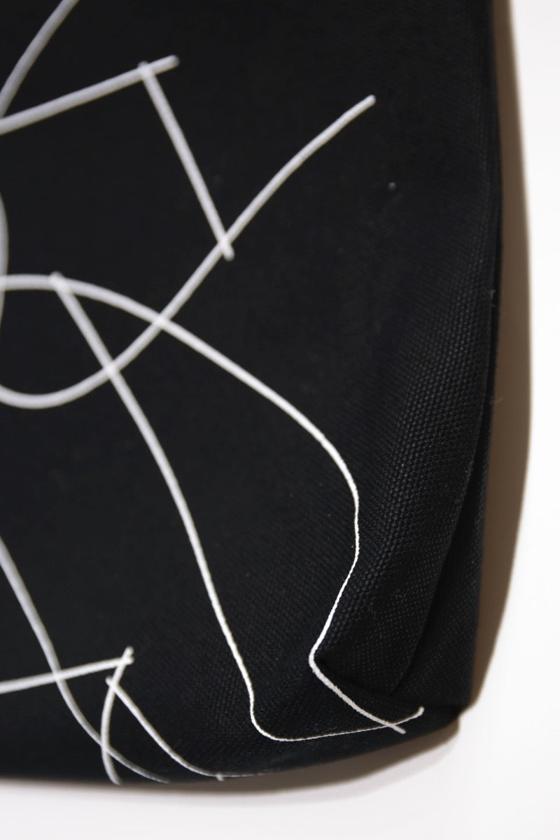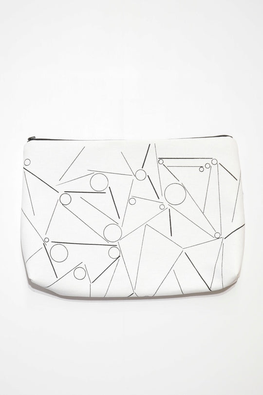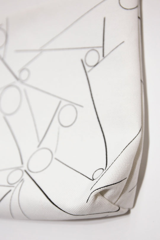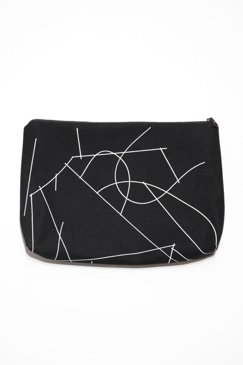 ハリのあるコットン地に、シルクスクリーンでプリントを施したクラッチバッグ。