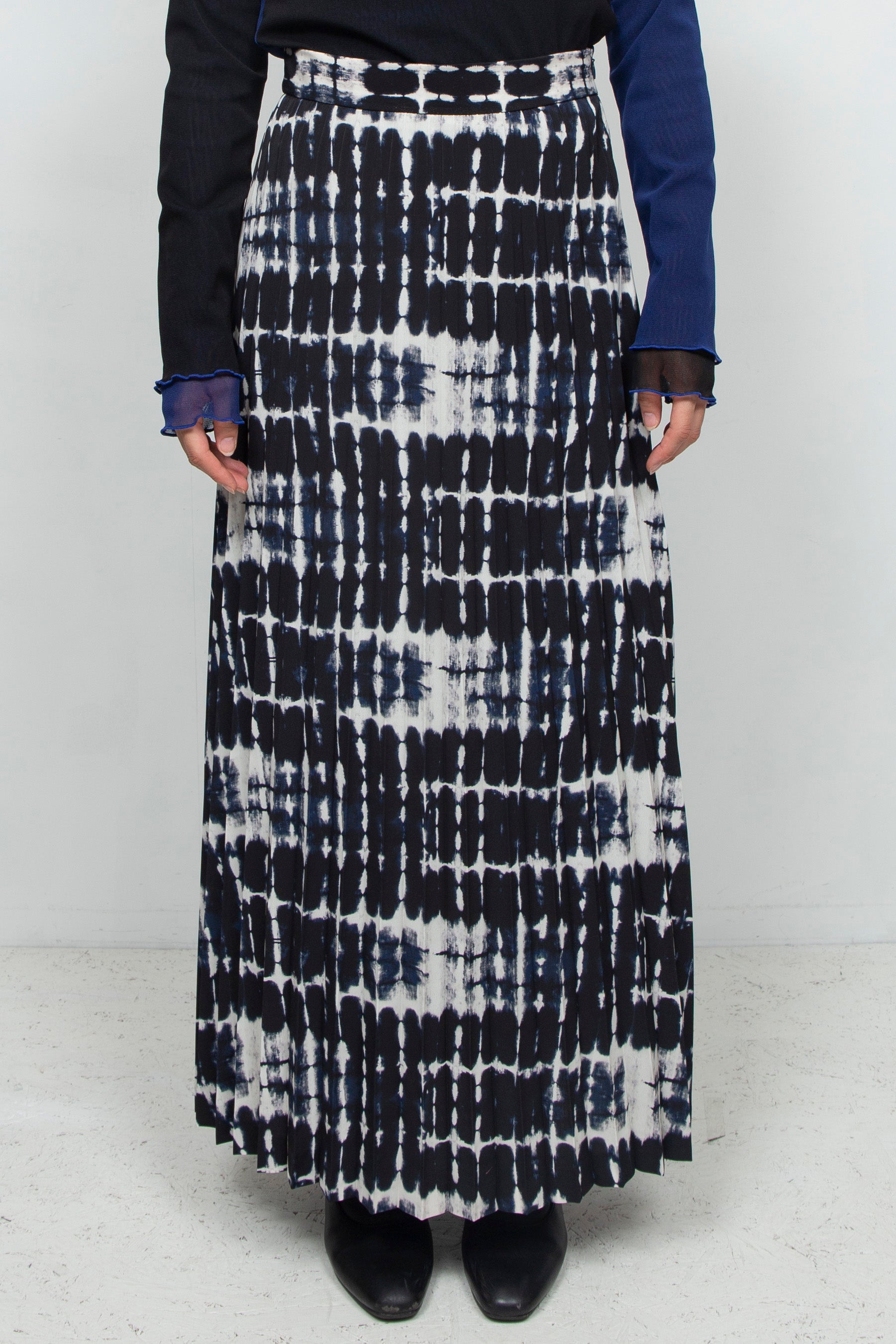 絞り染め柄のプリント生地を使用したワンピースです。たっぷりと生地を使用したゆったりとしたシルエットのワンピースです。肘から袖口にかけて大きくスリットが入っており、ボタンで開け閉めしてご着用いただけます。
