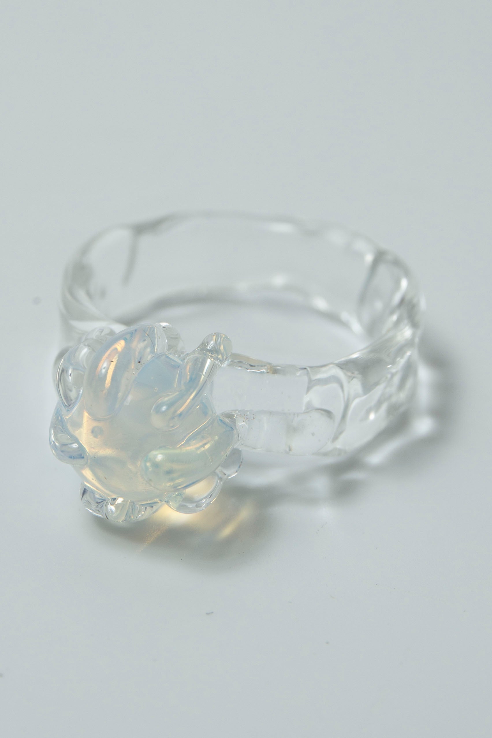 mistと水面のコンビネーション。ハニカム(六角形)のフォルムのデザインで、半分がクリアなガラス、半分がスモーキーなガラスになったデザイン。