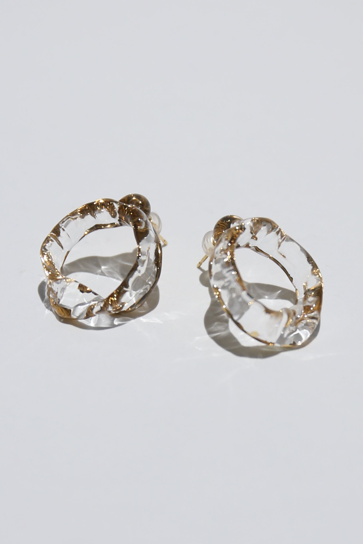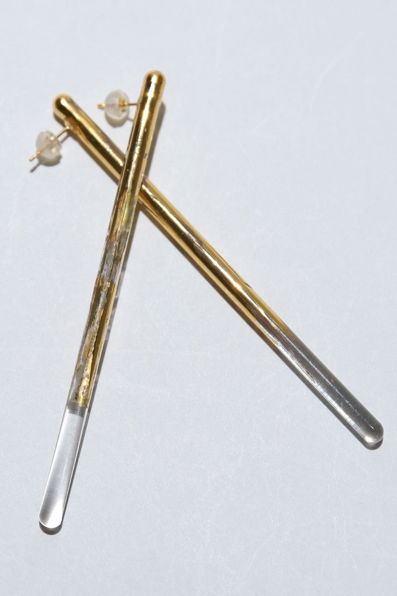 ガラスの表面にかすれたようなイメージで24金を焼き付けたピアス。