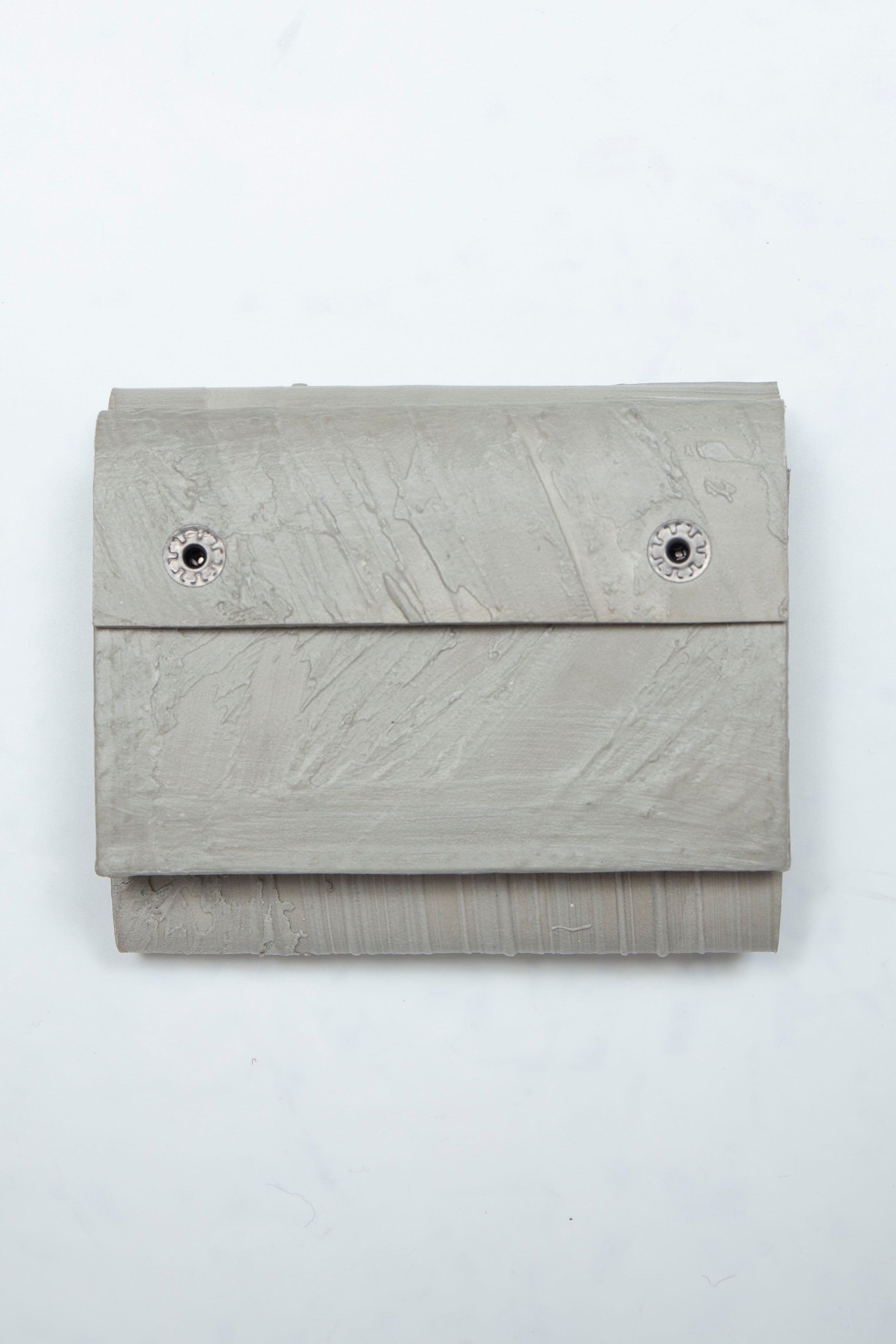 スナップボタン式の三つ折り財布。中は札入れ、カード入れ4室(12枚分)のシンプルなデザイン。