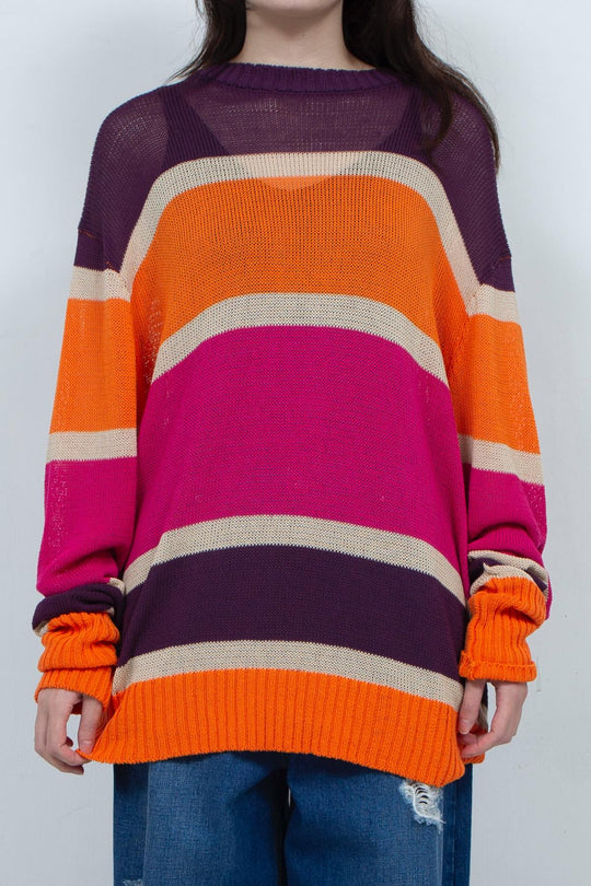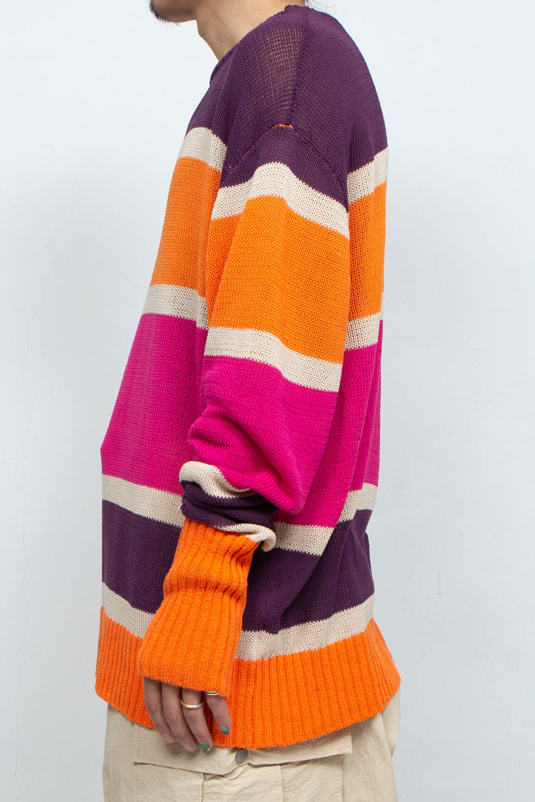 シーズンのステイトメントにある風景の夕景が配色されたコットンニット。