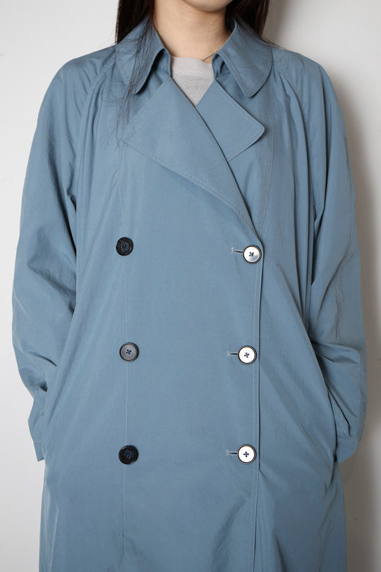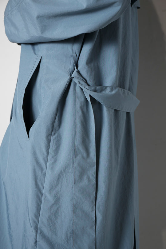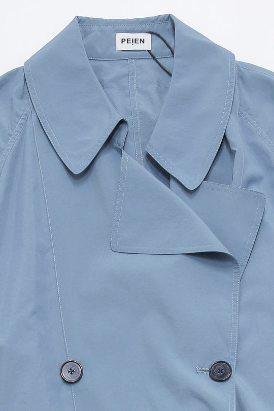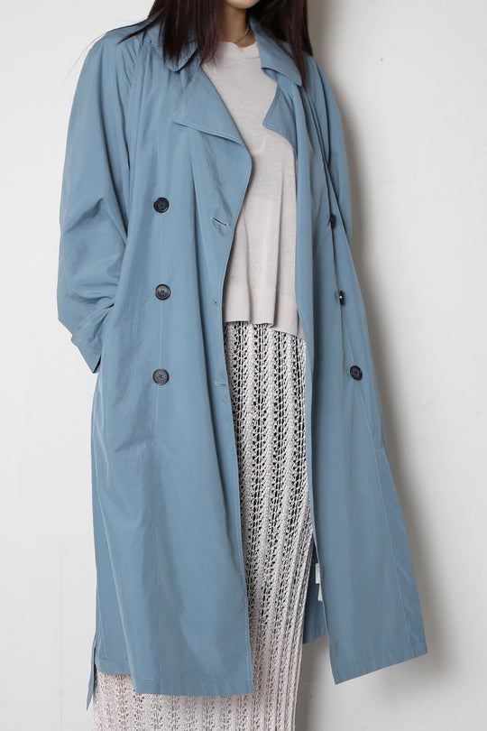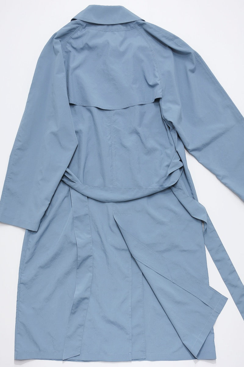 軽やかなカラーと素材で仕上げたトレンチコート。