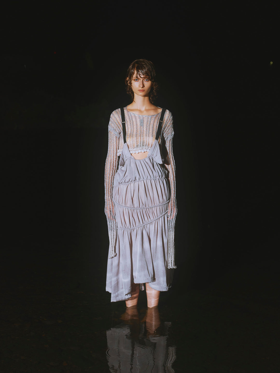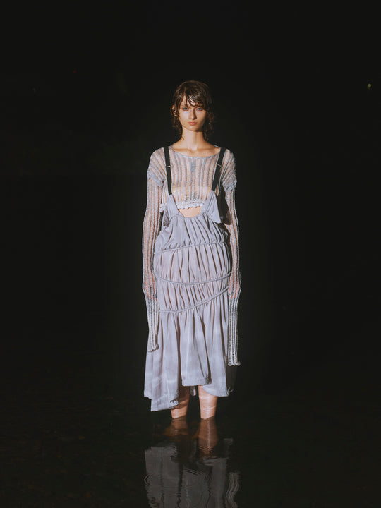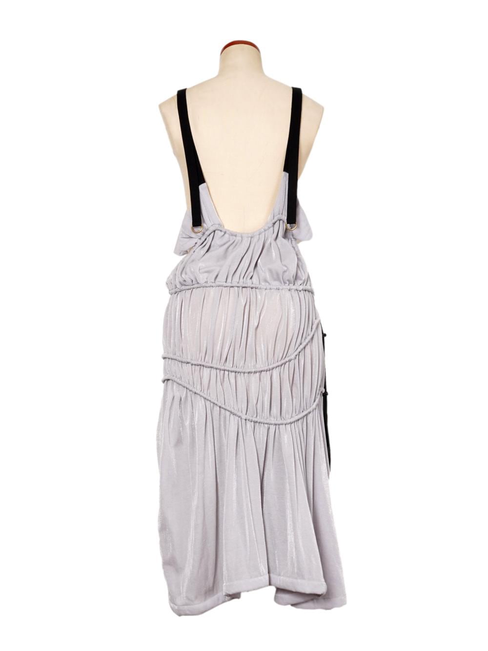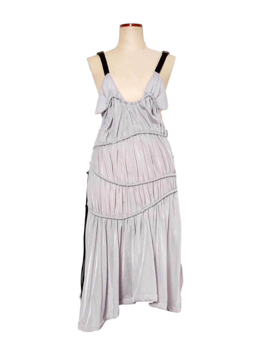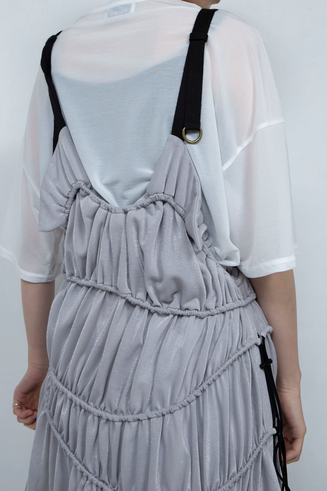 ふんだんなギャザーによる立体感が特徴のワンピース。ショルダーストラップで長さの調整も可能です。