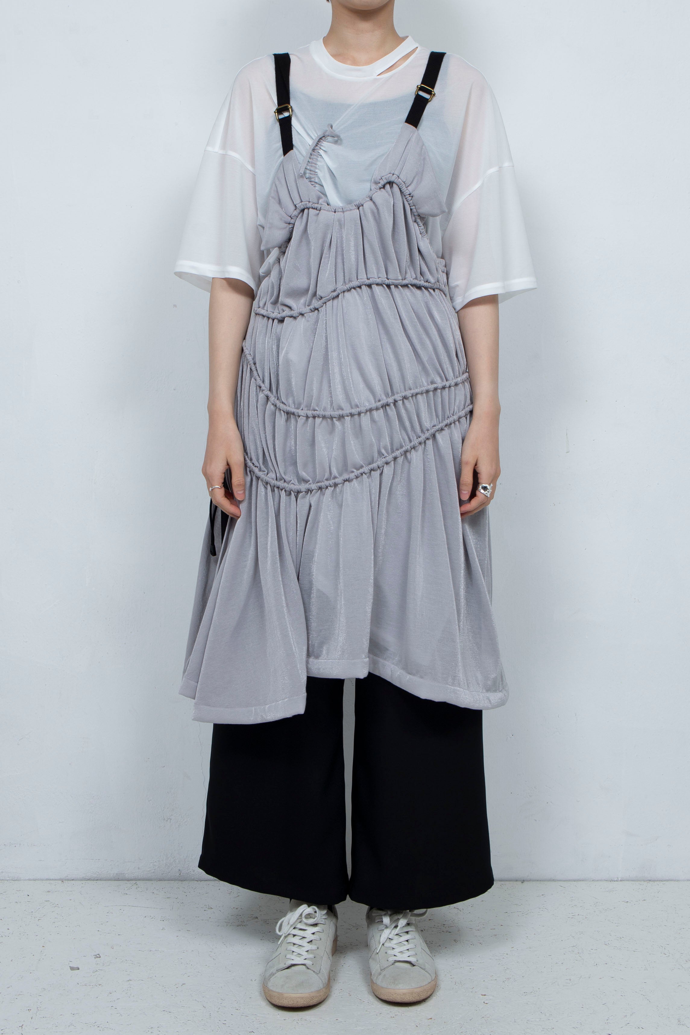 ウエスト部分は紐でサイズの調整が可能で、備え付けられたショルダーストラップでドレスとしても着用いただけます。