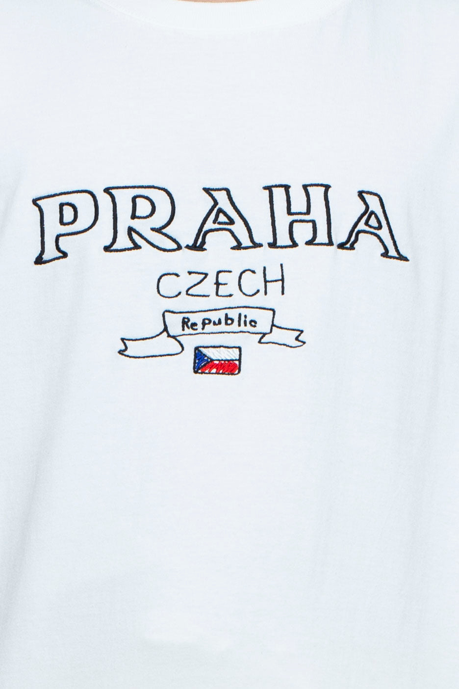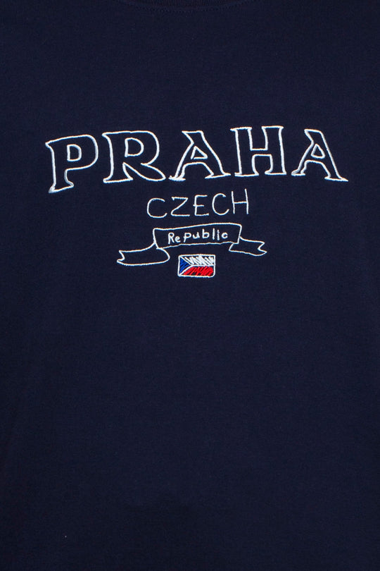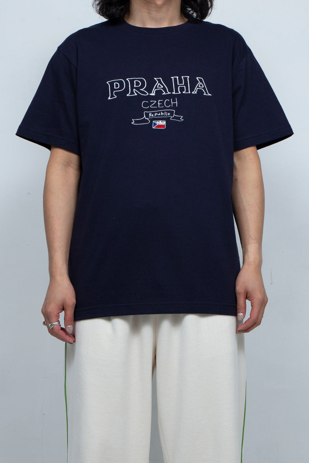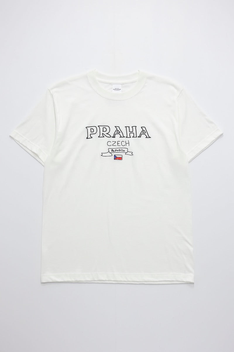 プラダ風、チェコ共和国プラハのお土産をイメージしたTシャツです。ど直球ながら抜けのあるグラフィックがGood。