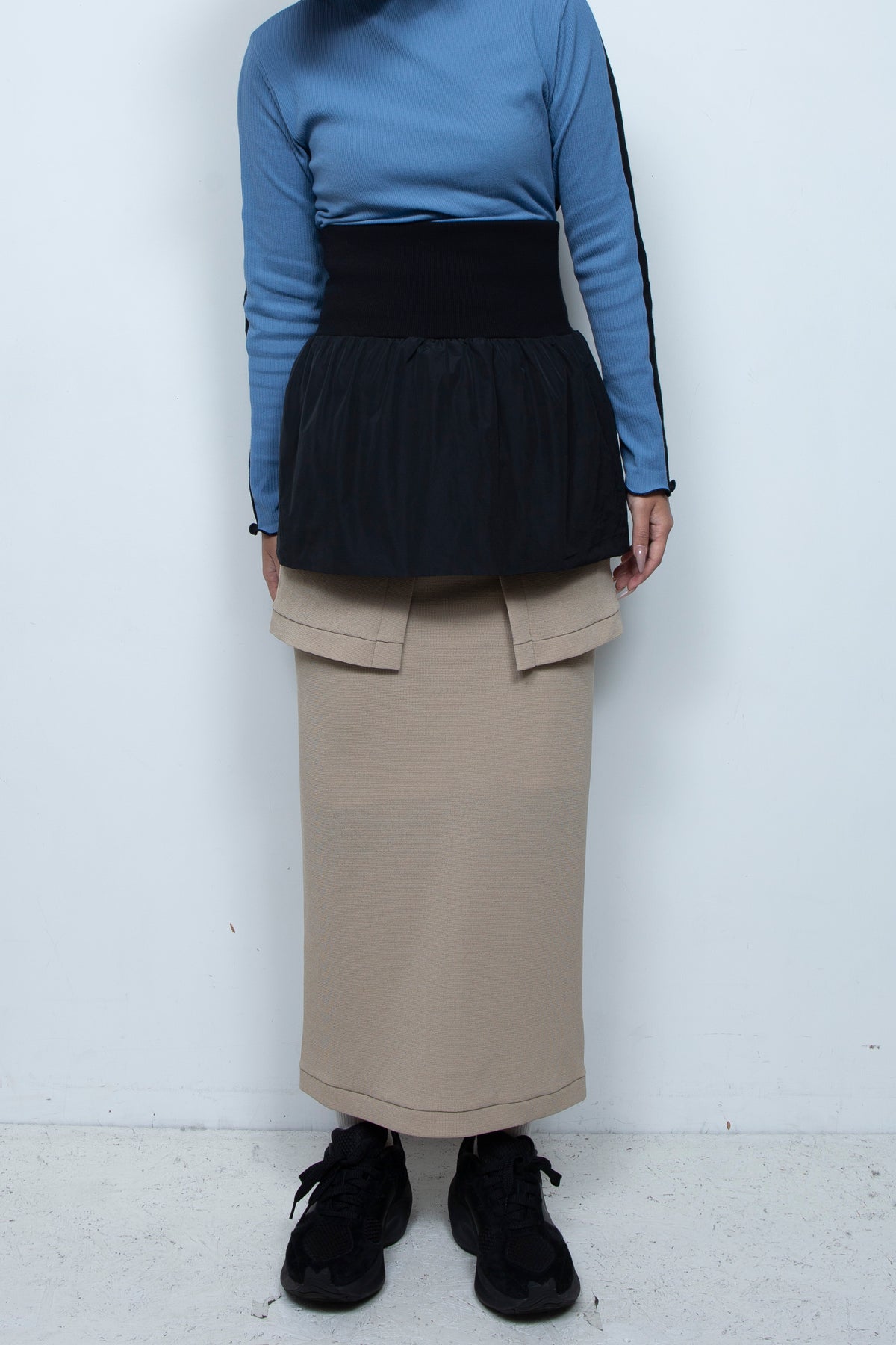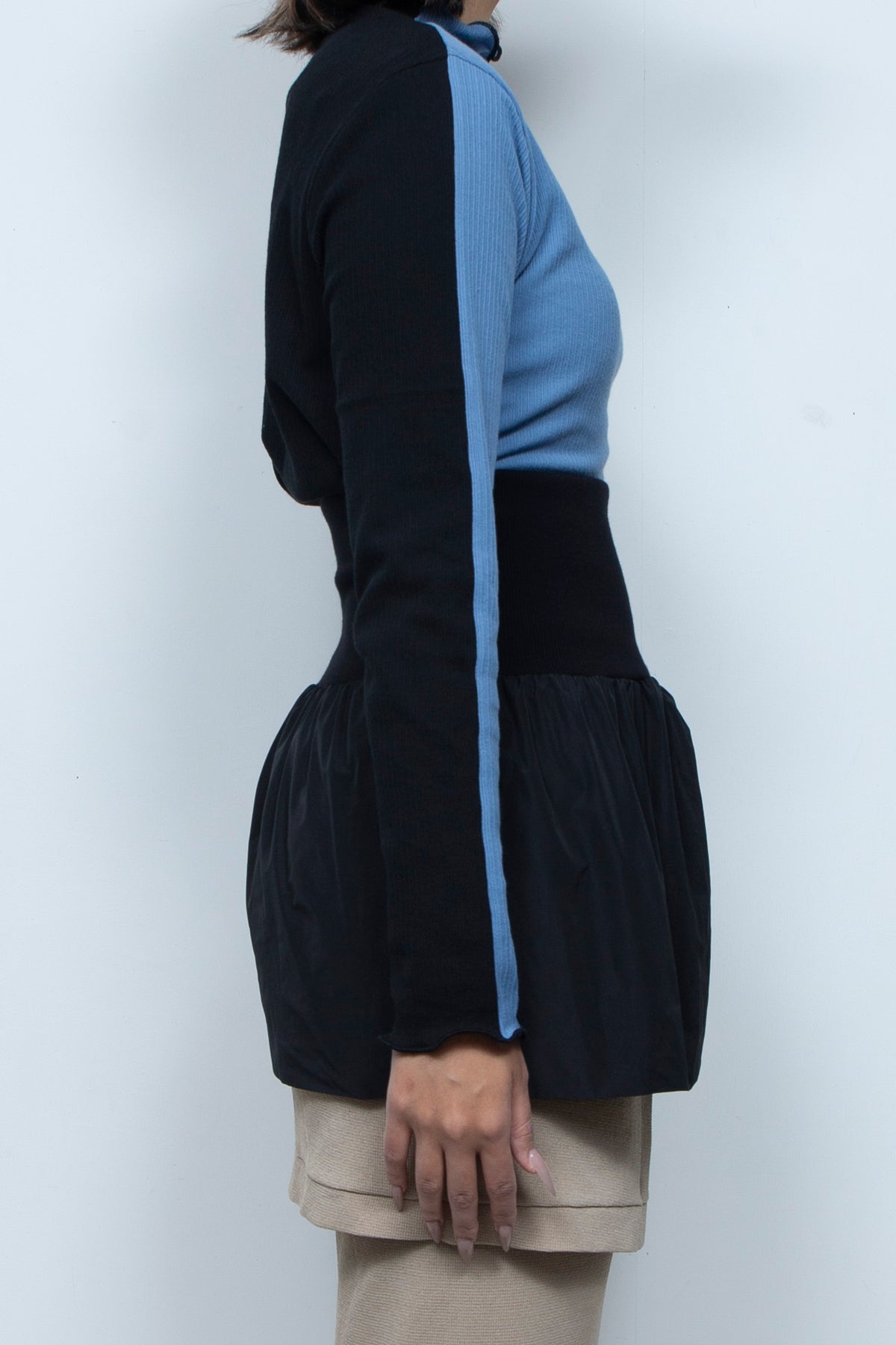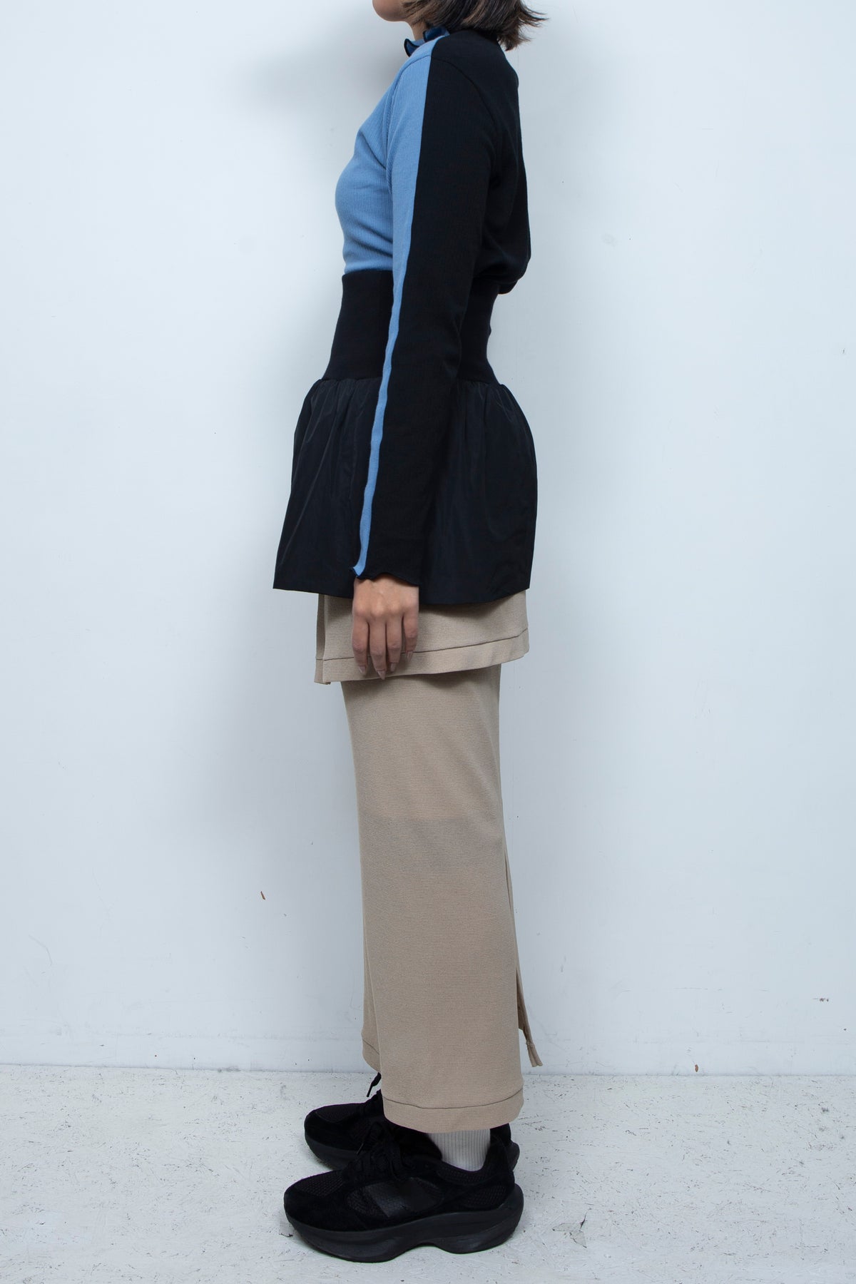 ショート丈のバルーンスカート。リブ部分が長くとっているため、シルエットにコントラストが出るデザイン。