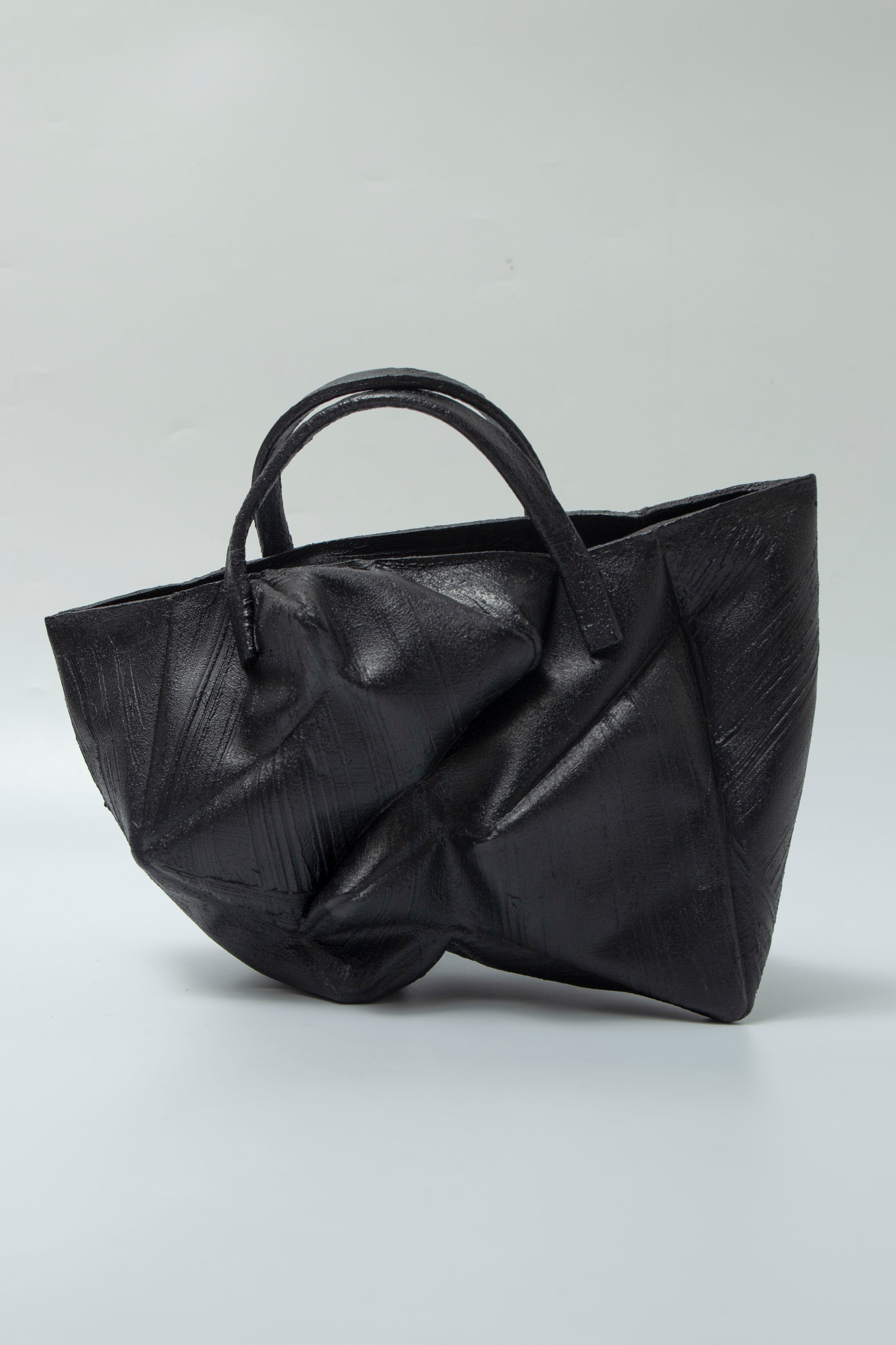 この形はユニセックスウェアレーベル・HATRAのデザイナーの長見氏に「物体をぐにゃっと潰したパターンを作って欲しい」と依頼して作成されたデータを元に造形。 HATRAは平面と立体、現実と仮想など様々な境界を独自の視点で鮮やかに研究/横断しているとても素晴らしいブランドです。