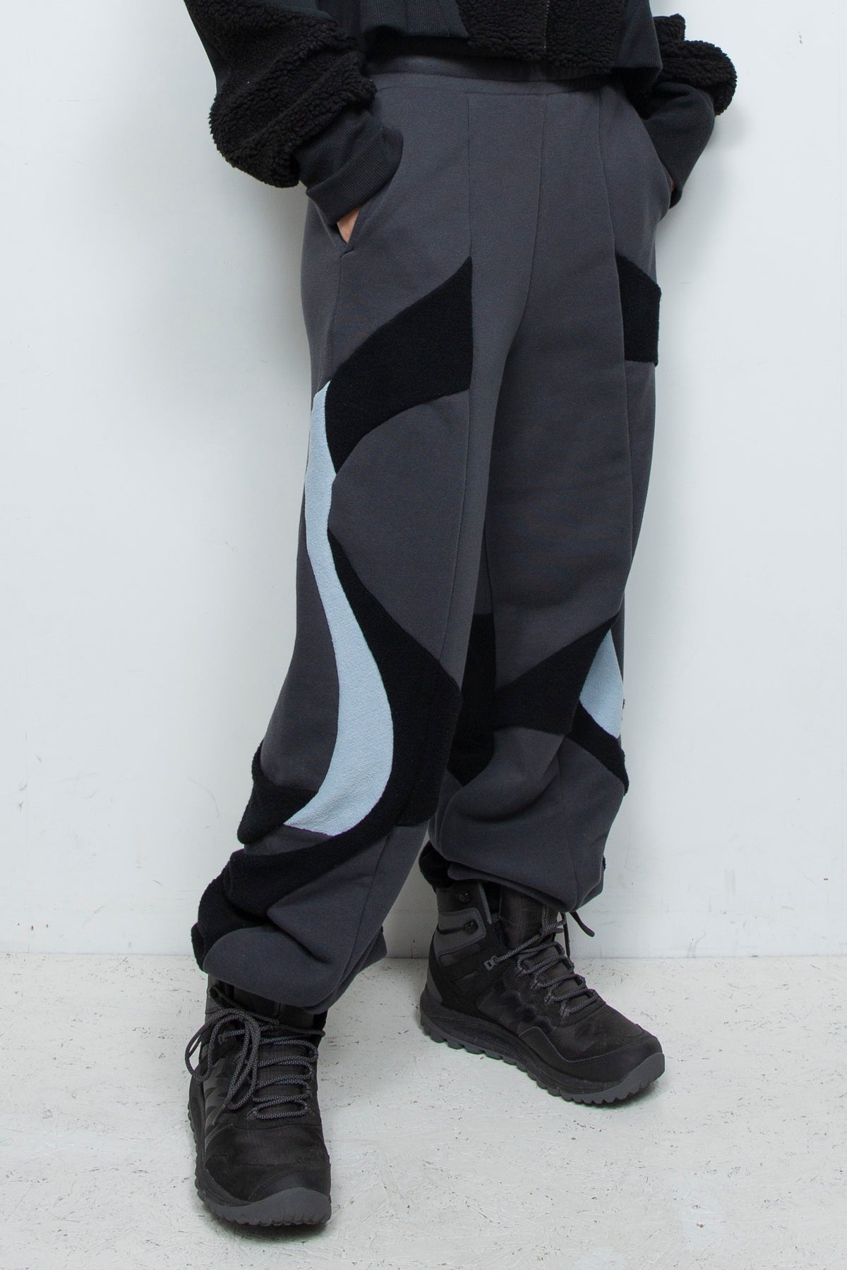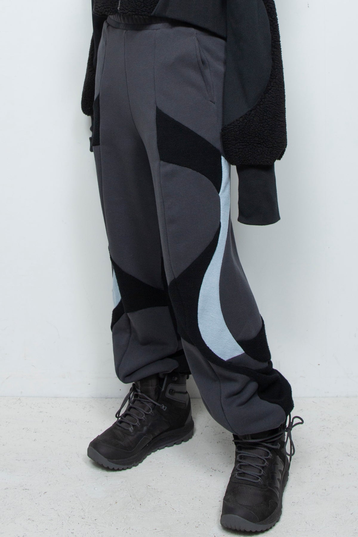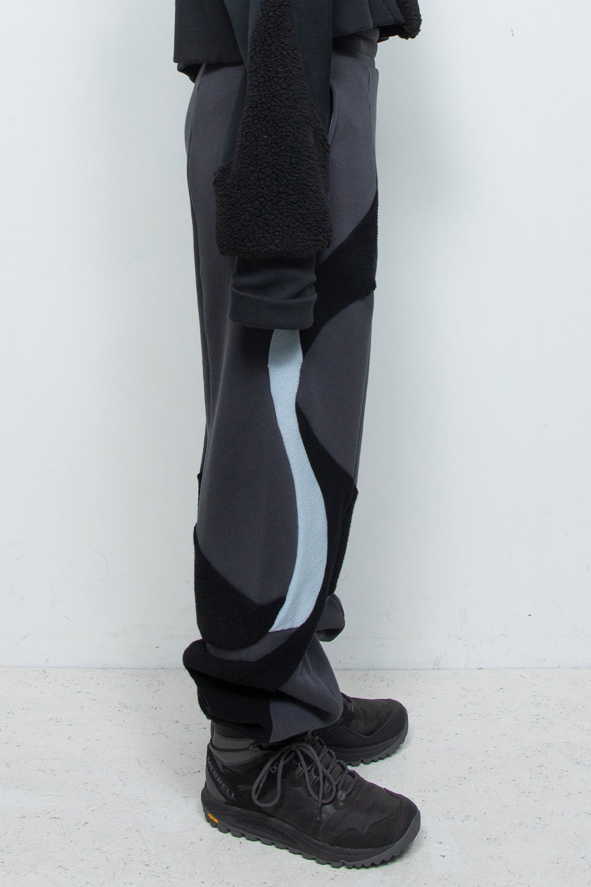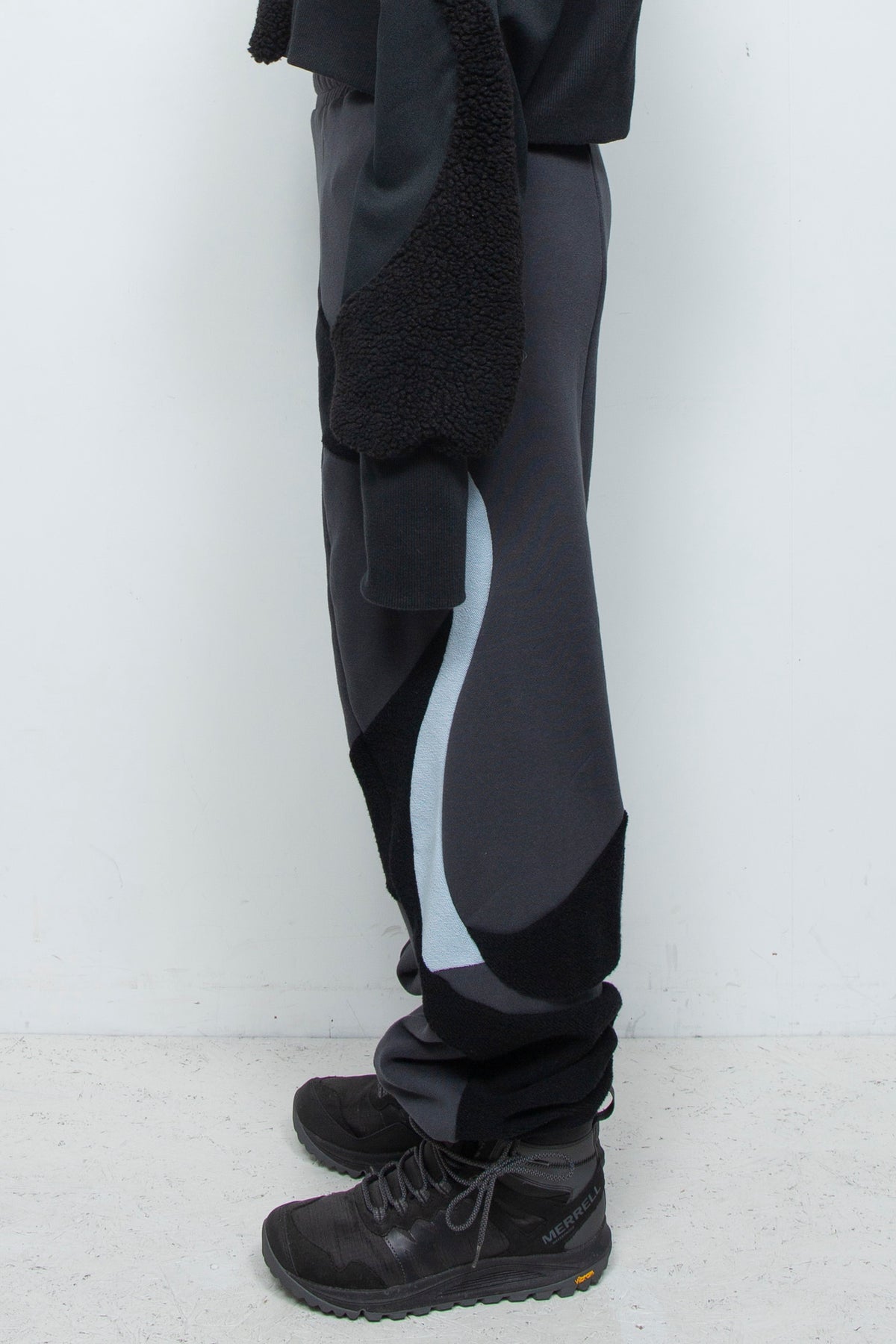 人工的な曲線を思わせる多数の切替デザインが特徴で、パンツ側面のグラフィカルな切替が着用時の存在感に。