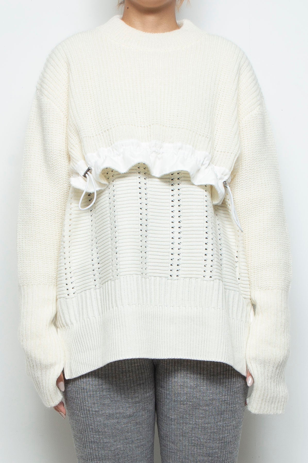 裾切り替え部分はドローコードでギャザー具合を調節可能。