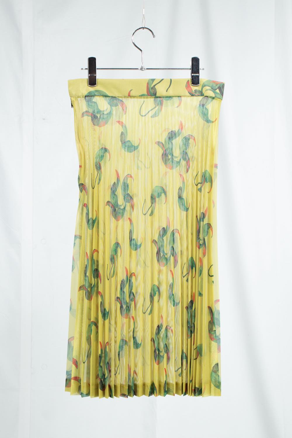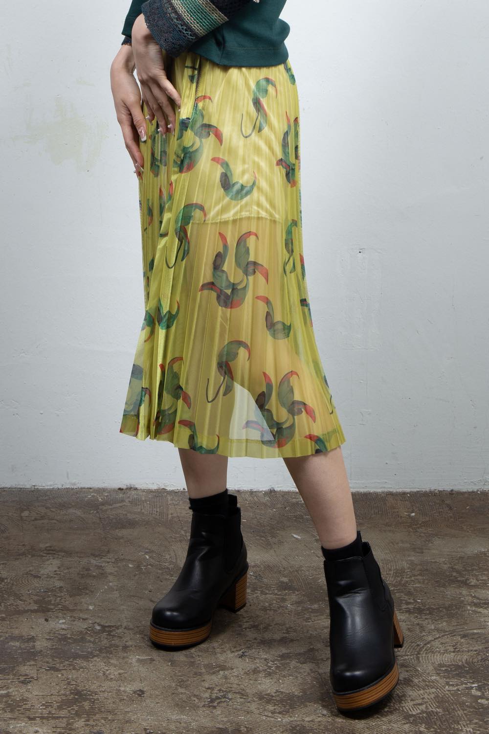 オリジナルの総柄プリントにプリーツ加工を施したスカート。