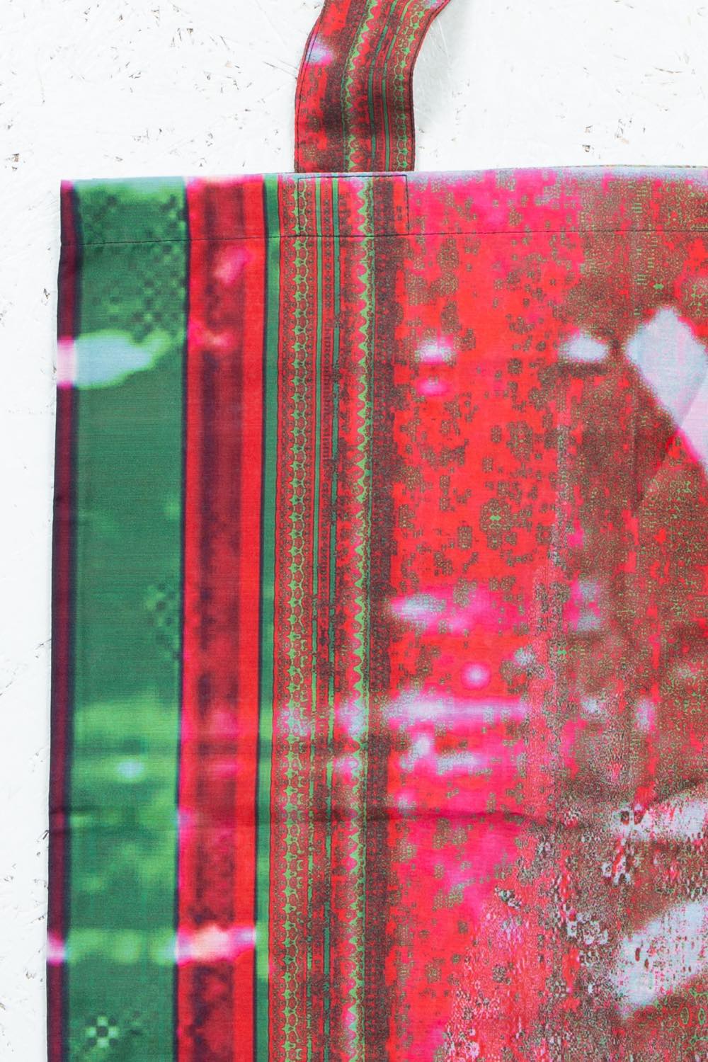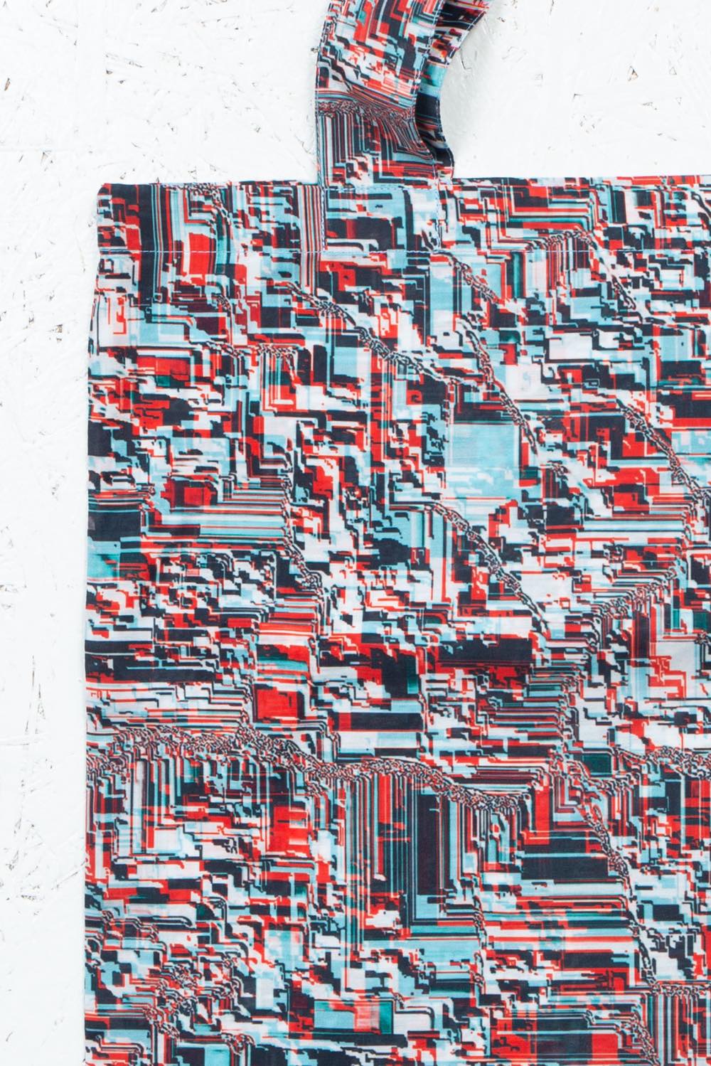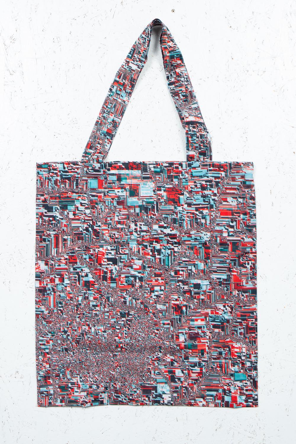 カガリユウスケが撮影した壁写真の中から厳選したものを、アーティストUc Nv がグリッチ化したグラフィックのトートバッグ。