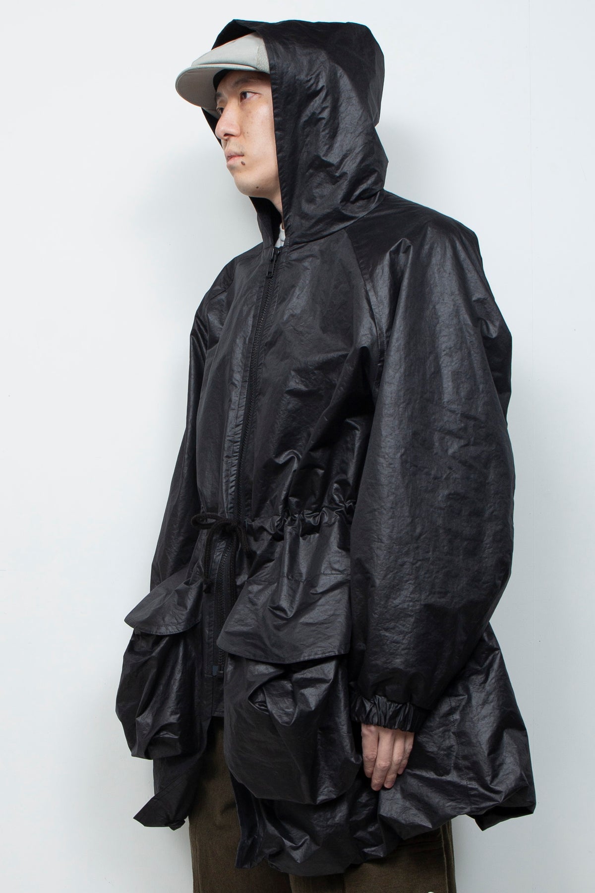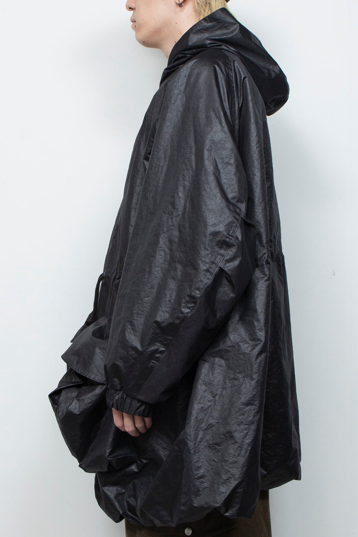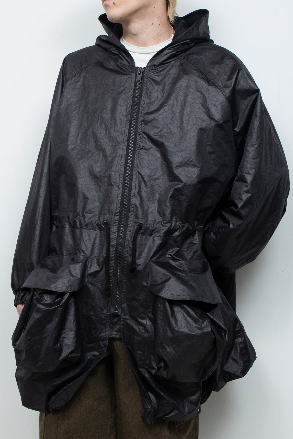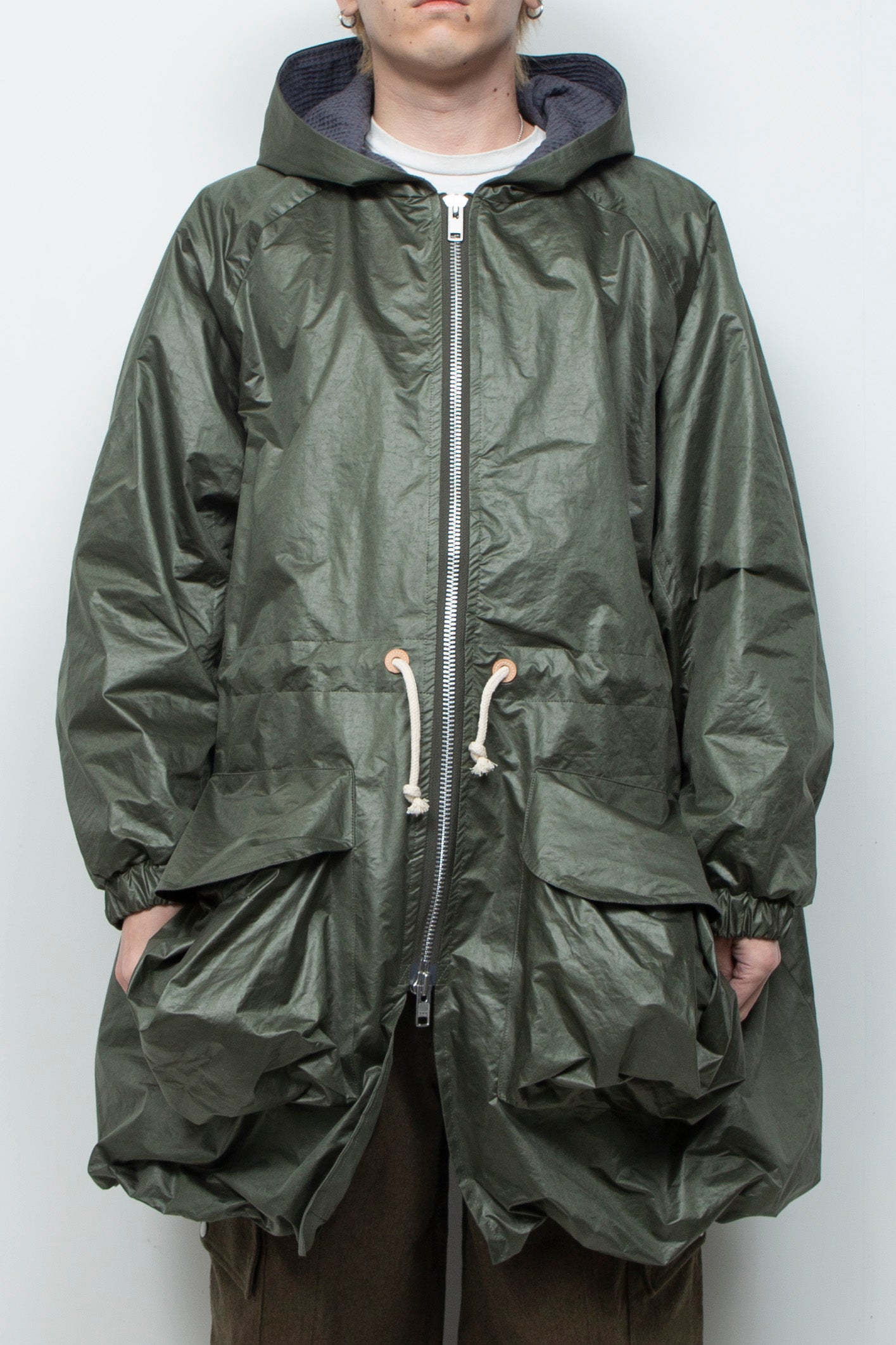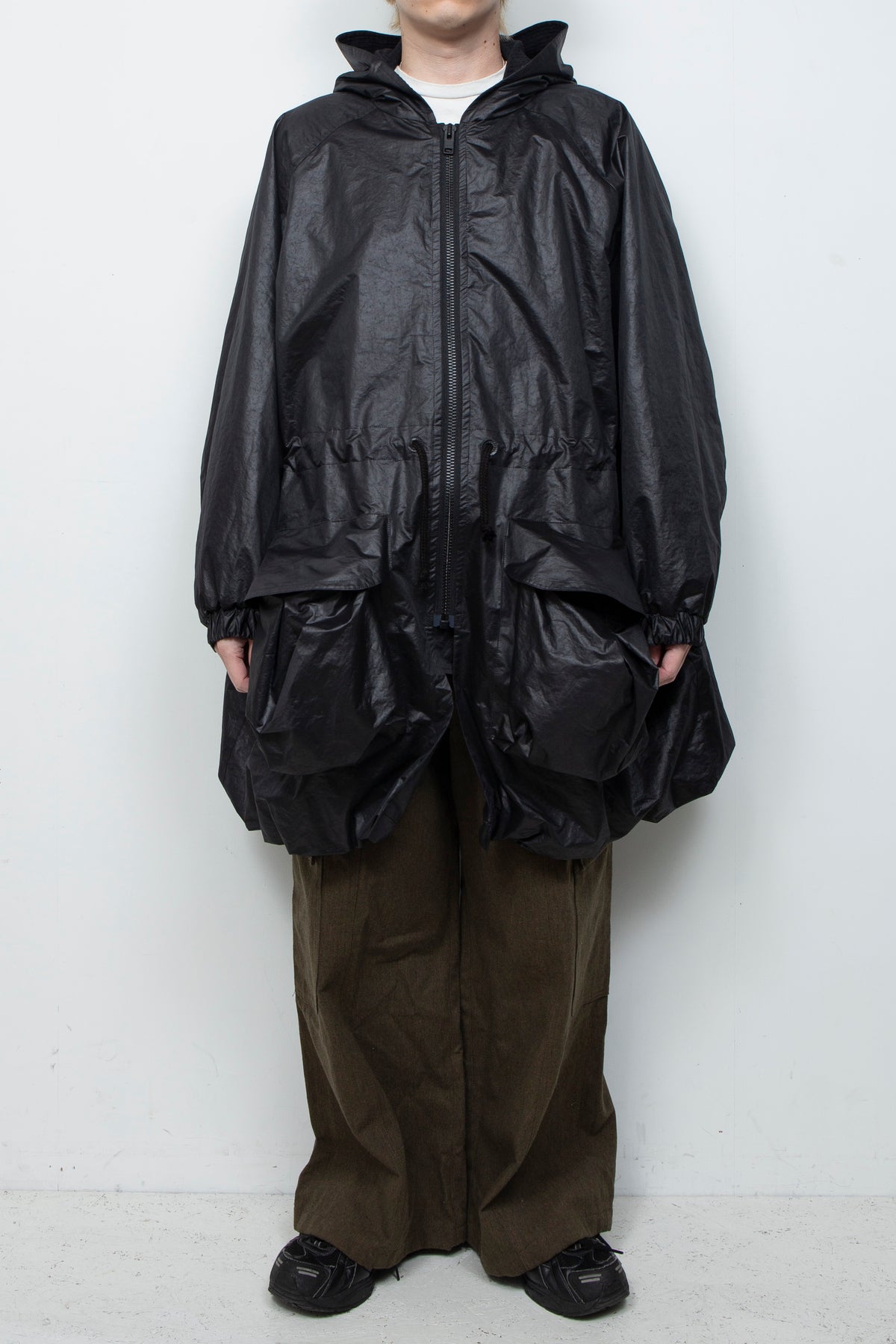 裾のたっぷりとしたシルエットが特徴のミドル丈フーデッドコート。丸く膨らんだ立体的なフラップポケットが印象的で、デザイン的なインパクトもありながら収納力も抜群です。