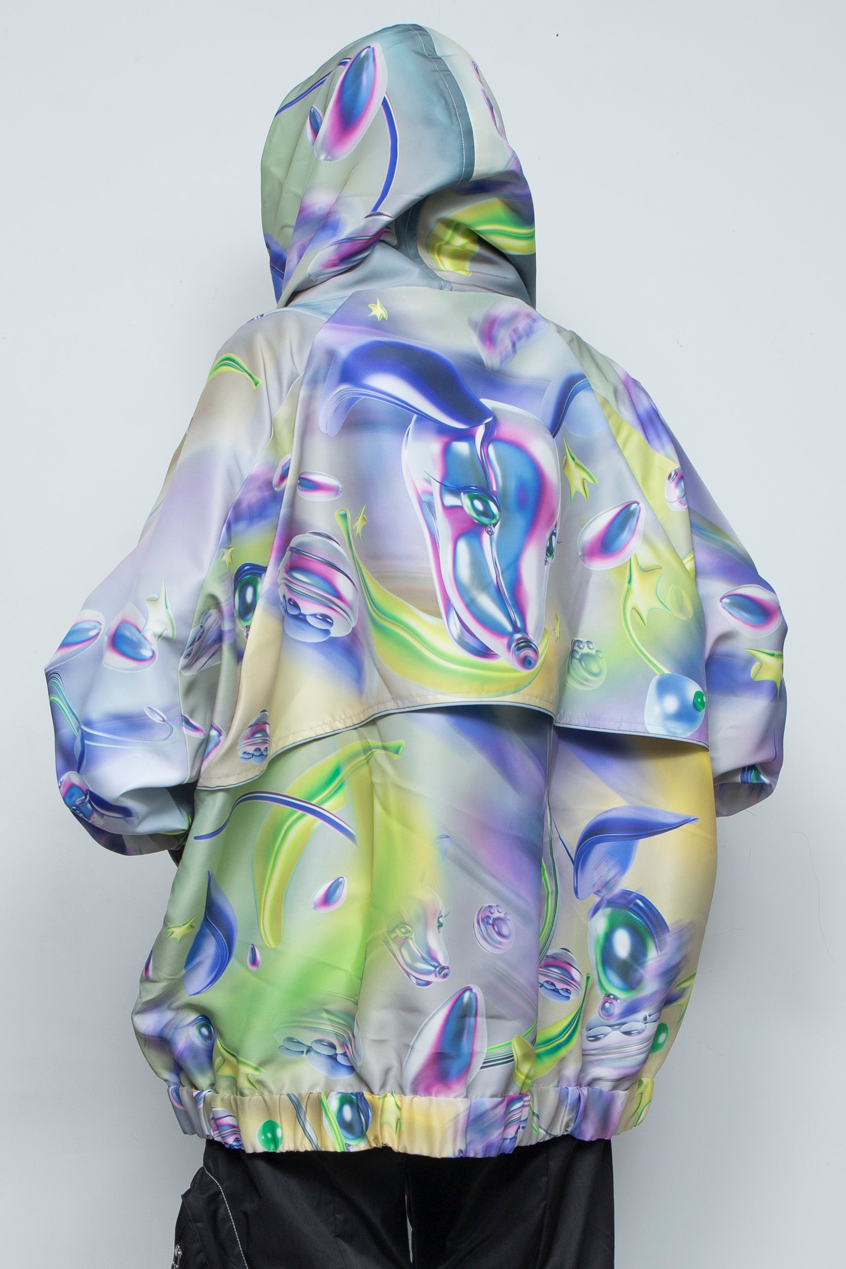 ハイネックの立体的なフード、切り替えラインやパイピングのデザインが特徴の定番ビッグパーカー。