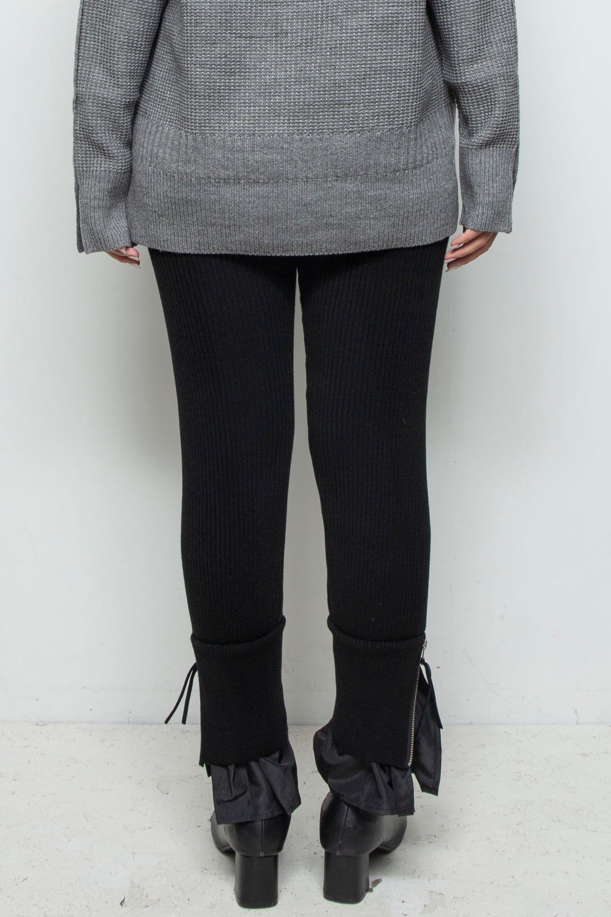 ウエストと裾の素材切り替えが特徴的なリブパンツ。