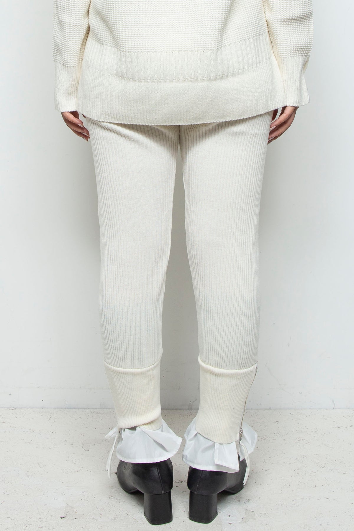 ウエストと裾の素材切り替えが特徴的なリブパンツ。
