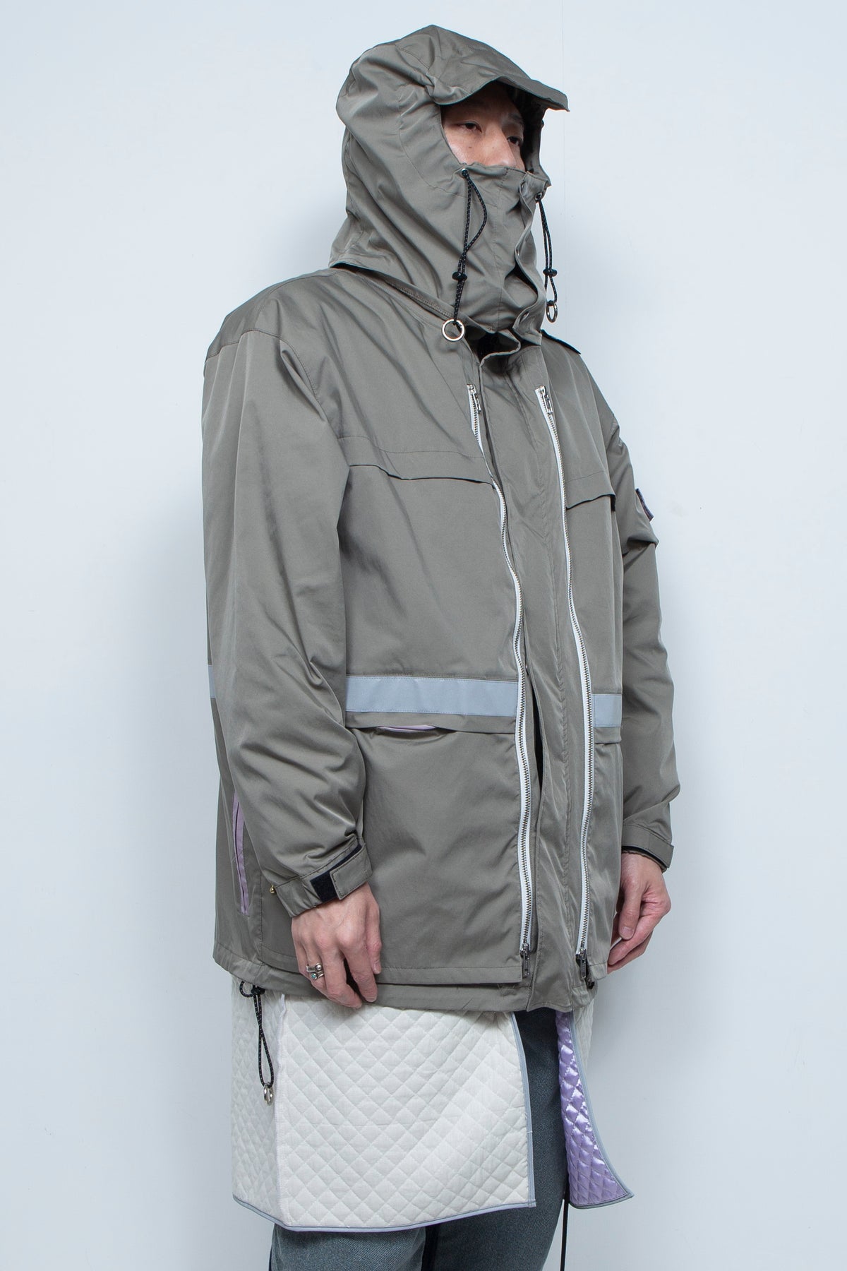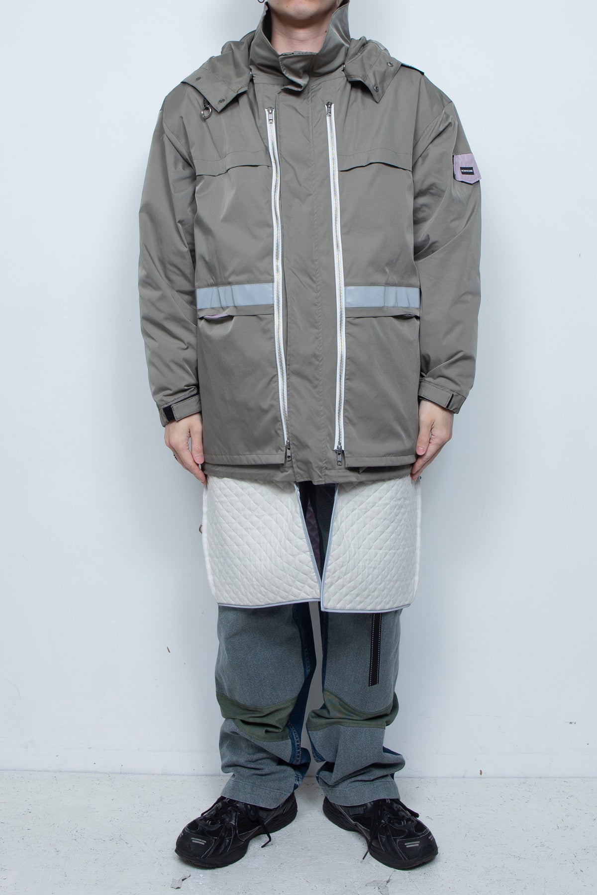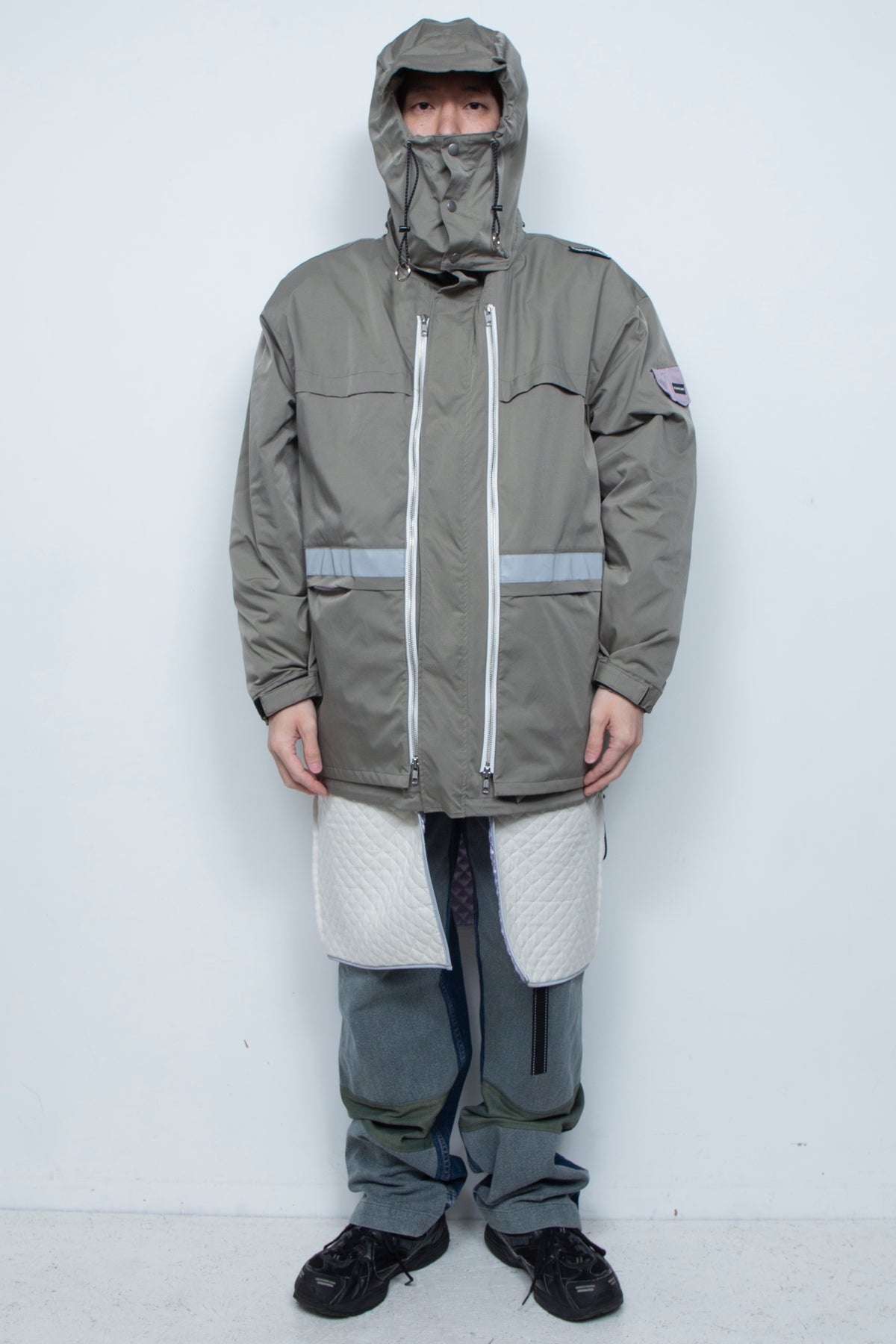 リモンタ社の生地を使用したアウトドアジャケット。 様々なガジェットを収納出来るようにポケットが約15箇所にあります。 キルティングライナーも取り外し可能で、別々に着用可能です。