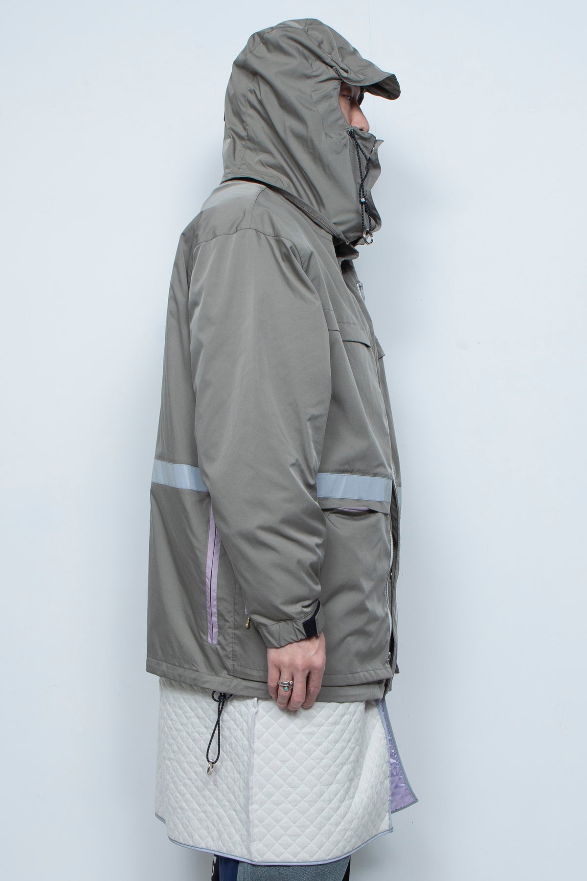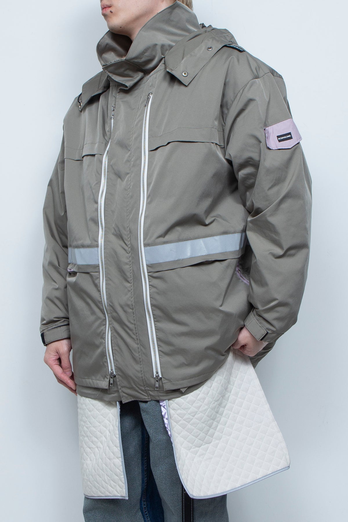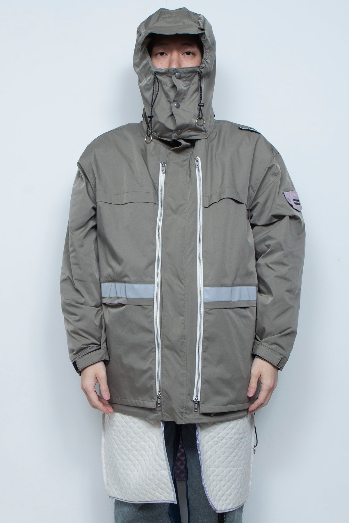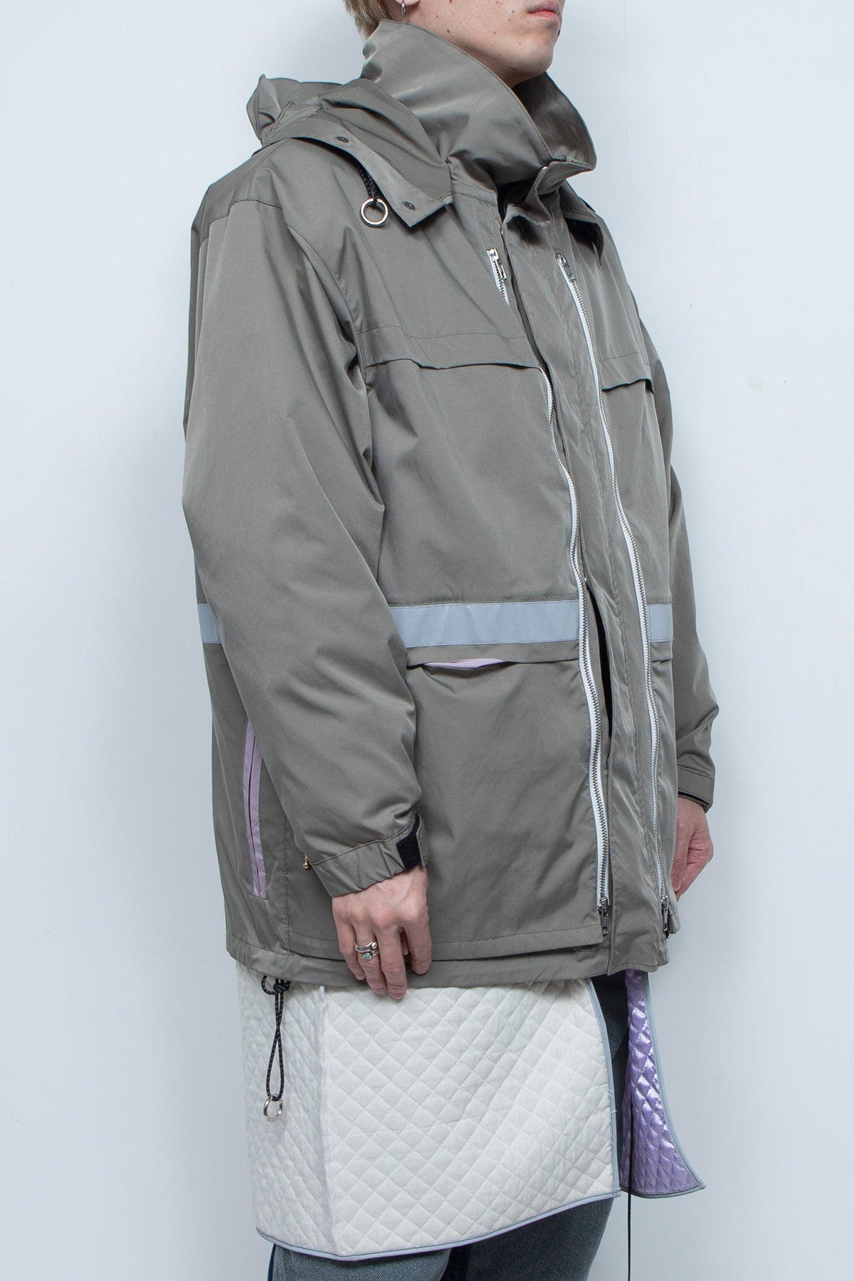 リモンタ社の生地を使用したアウトドアジャケット。 様々なガジェットを収納出来るようにポケットが約15箇所にあります。 キルティングライナーも取り外し可能で、別々に着用可能です。