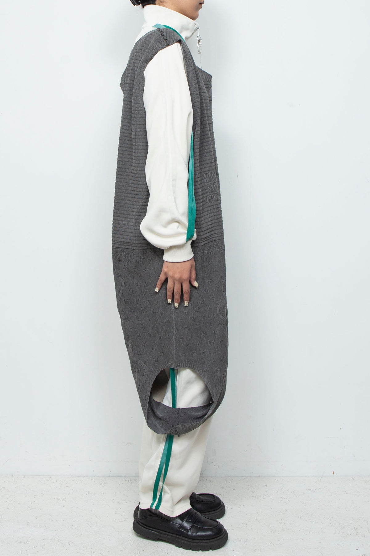 このアイテムは、自由な発想から生まれた新しい形。一枚のロングドレスで ありながら、裾を折り返して着用することで、ニットベストとして全く異な る表情を見せてくれます。縫い目のないシームレスなデザインは、ストレス フリーで快適な着心地を実現。着る人のアイデア次第で何通りものスタイル を楽しめる、まさにあなたの個性を引き出す特別な一着です。