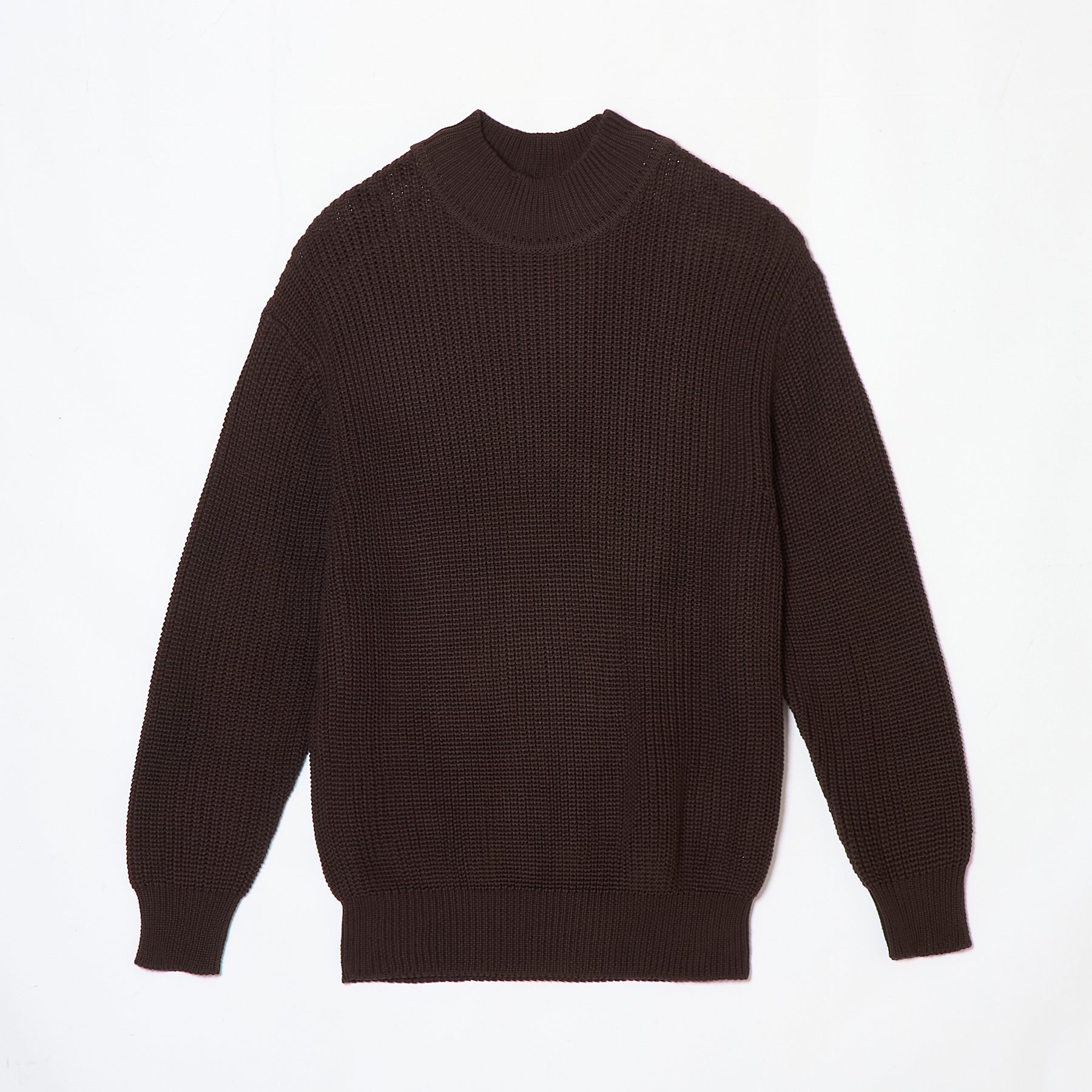 縦方向に長く重めに設定したシルエットと長めのリブが特徴のニット。