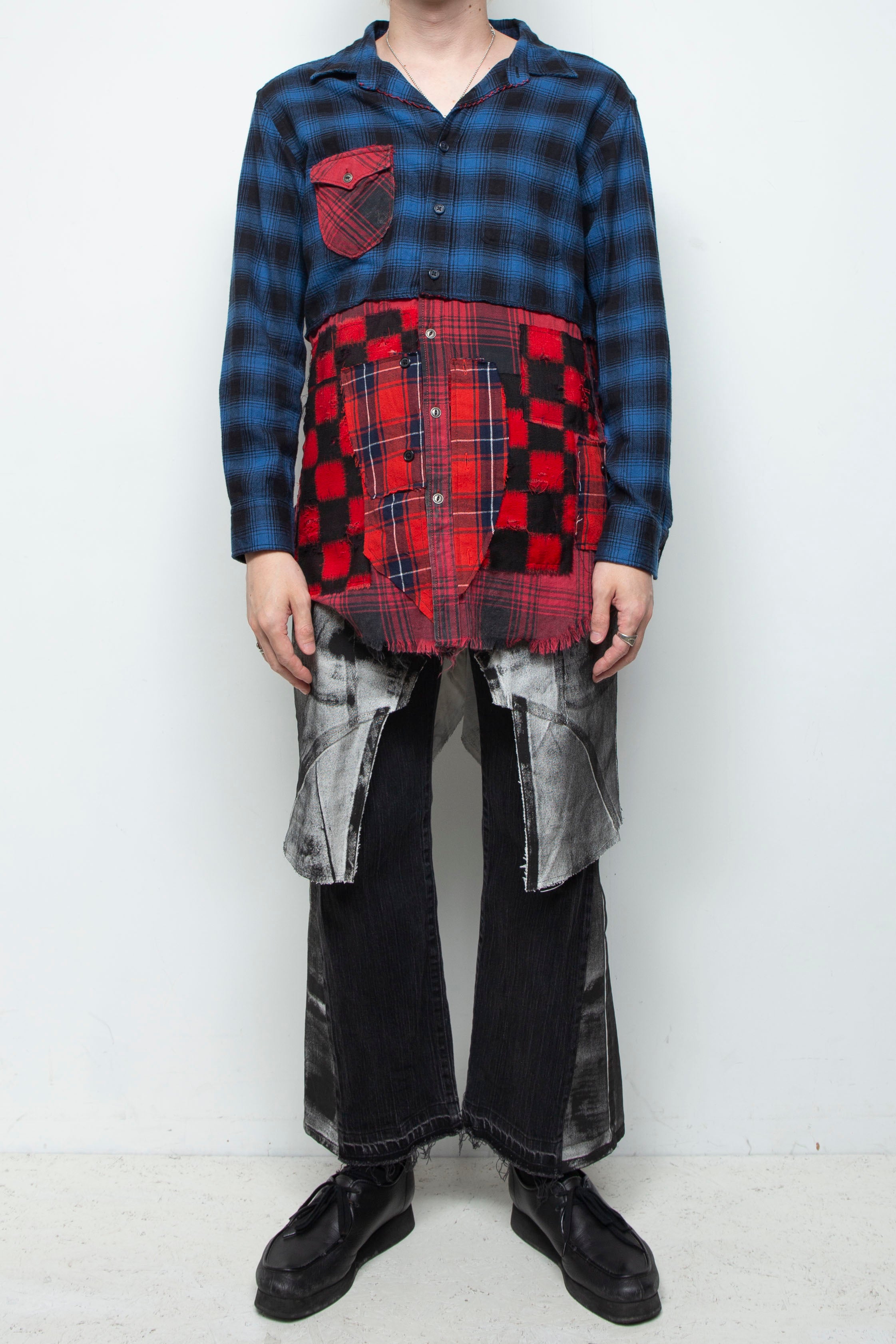 土台には、タキシードパンツが使用されており、フォーマルとカジュアルがミックスされたアイテム。