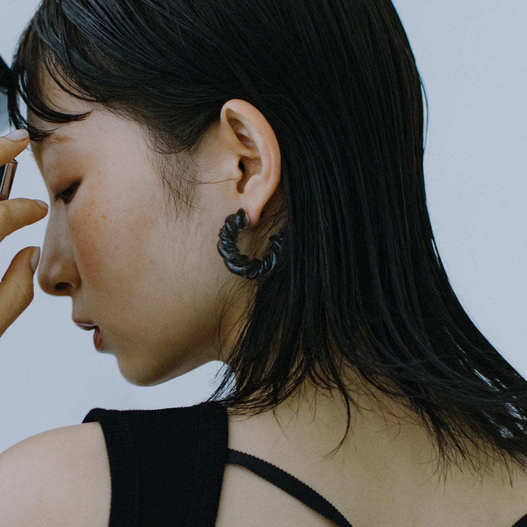 ritsuの人気アクセサリーの一つ、港の船を繋ぐホーサーからインスパイアされたピアス。