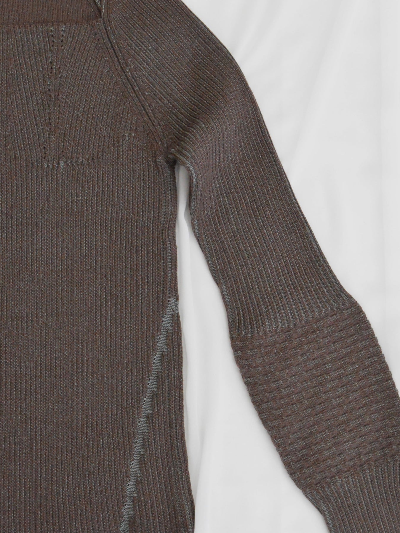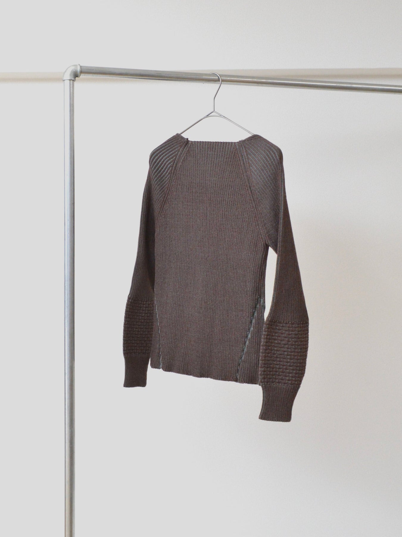 スクエアネックのラインが綺麗な、リブの変化編み が入ったデザインプルオーバー。