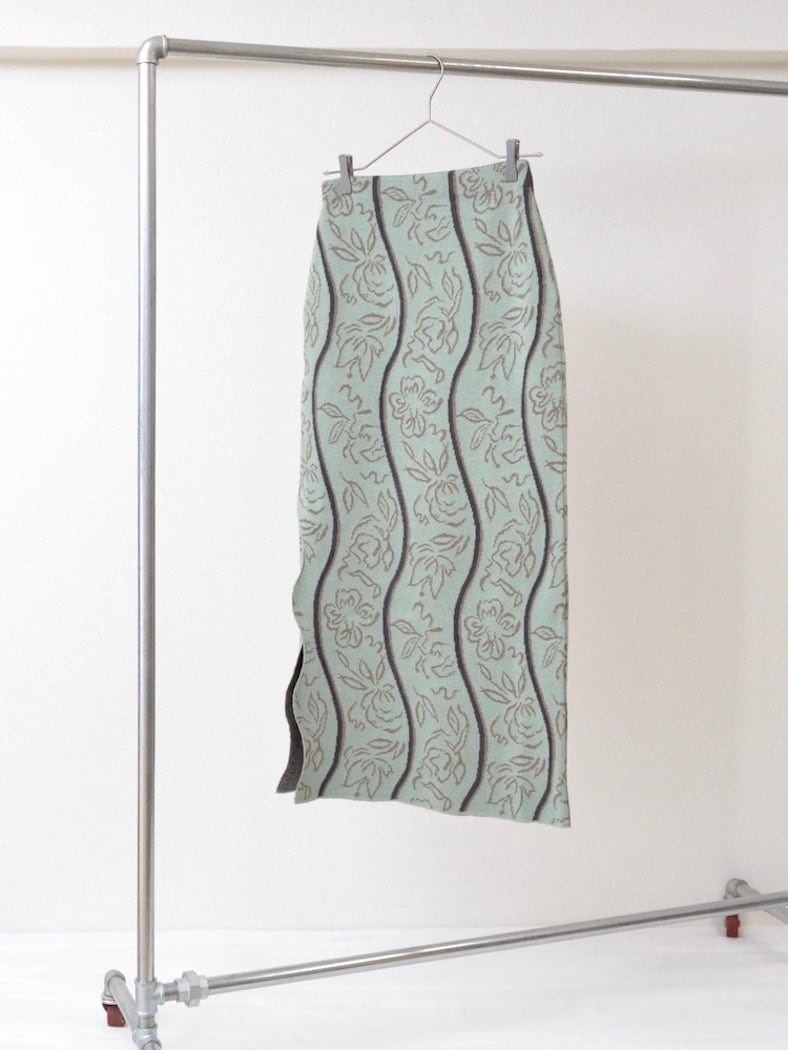 シベリアの短い春に咲く花々をモチーフに、ハンドペイント調のフラワー柄とウェーブ柄を組み合わせたJQ ニットスカート。