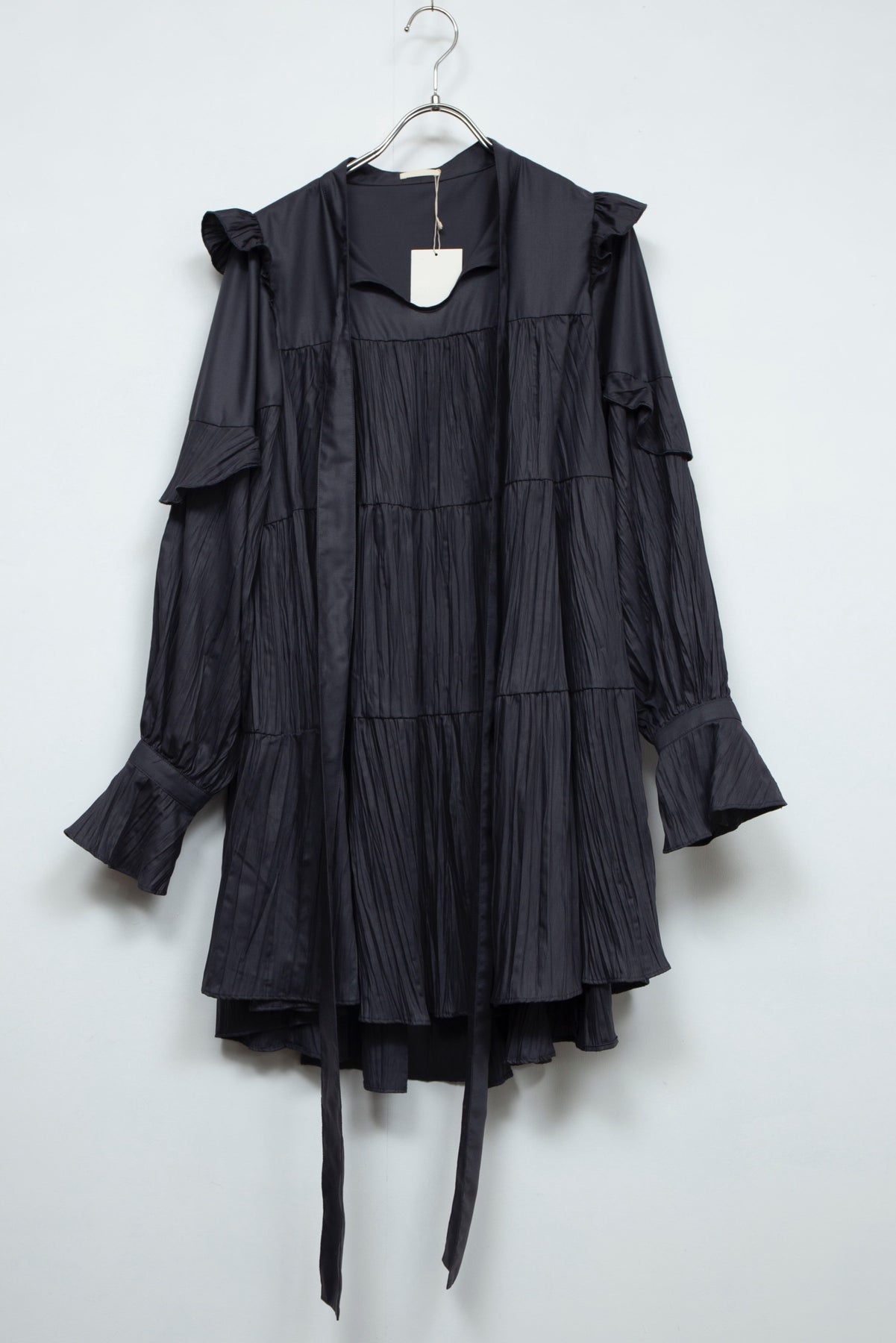ritsu Ribbon tie crinkled mini dresscharcoal gray