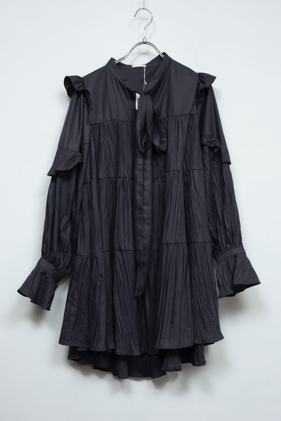 ritsu Ribbon tie crinkled mini dresscharcoal gray
