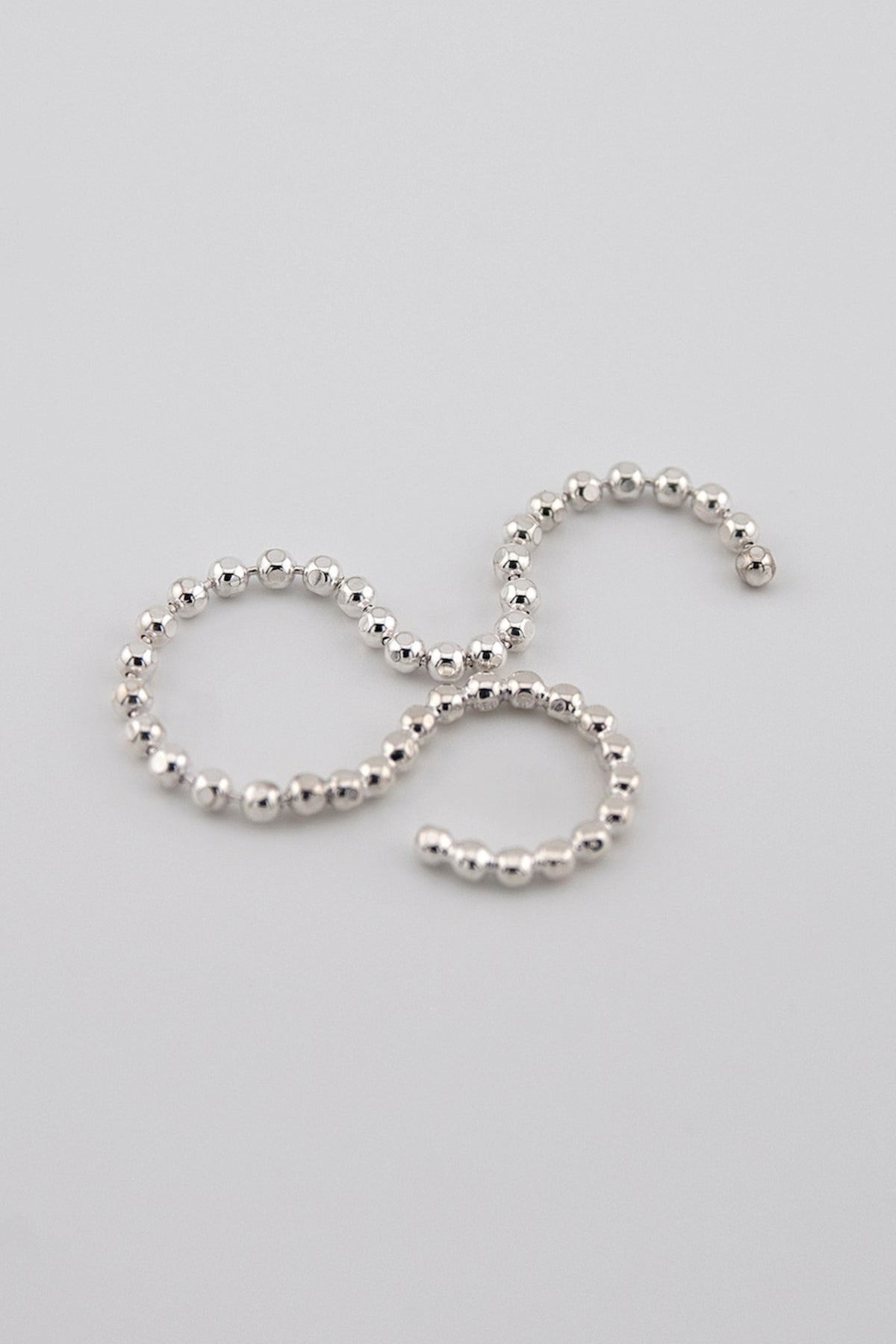 サイズの微調整も可能です。イヤーカフの開口部分は緩やかに動かせる構造になっており、ゆるさやきつさを感じた際は、両手でフープの開口部を軽く押して、お好みに合わせて幅を整えてください。