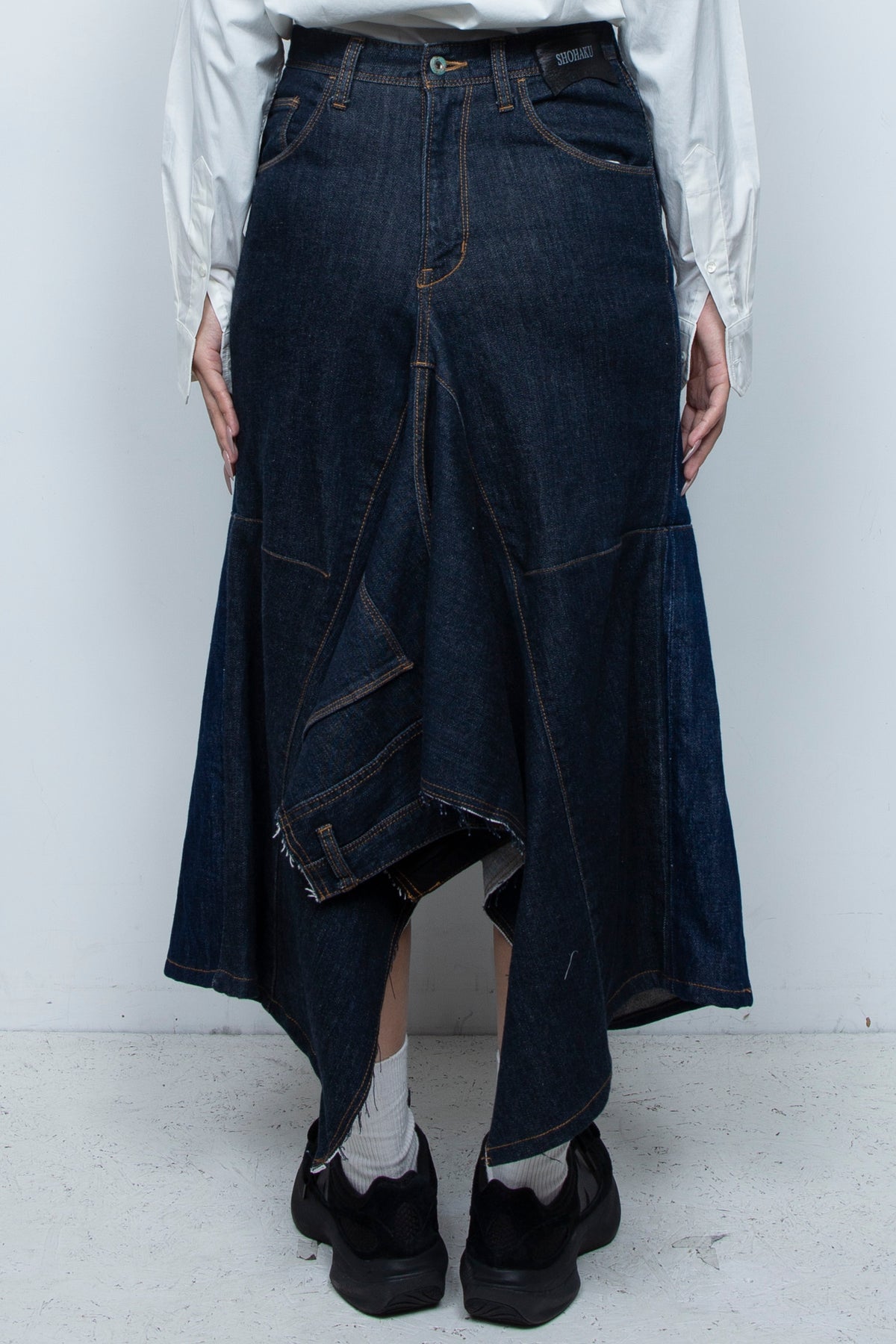 2枚のデニムを合わせて、スカートにしたアイテム。