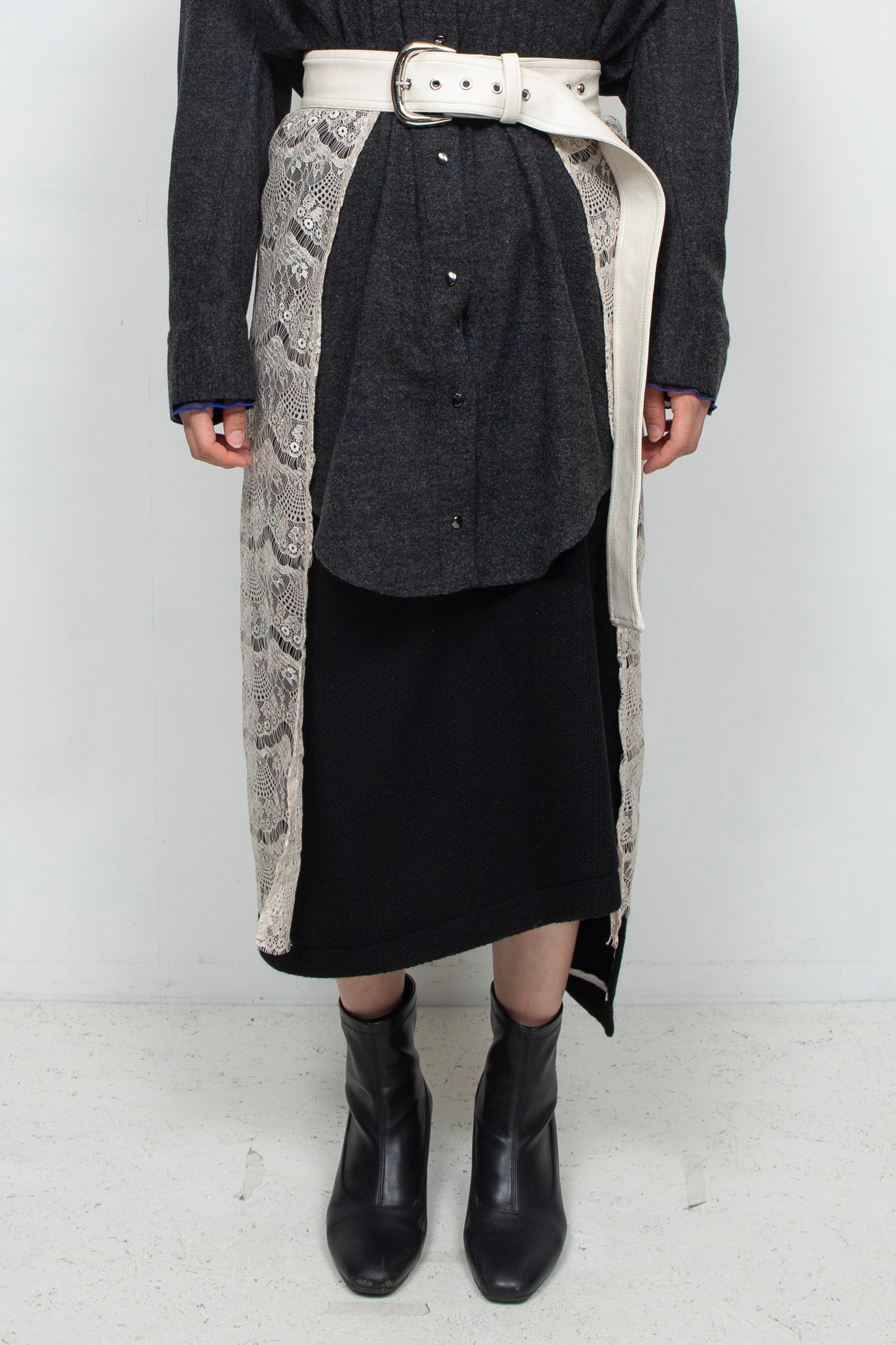 レザーベルトにスカートのようにレースを挟み込んだアイテムです。繊細なレースとレザーのバランスが絶妙です。デニムの上やワンピースの上から重ねてご着用ください。