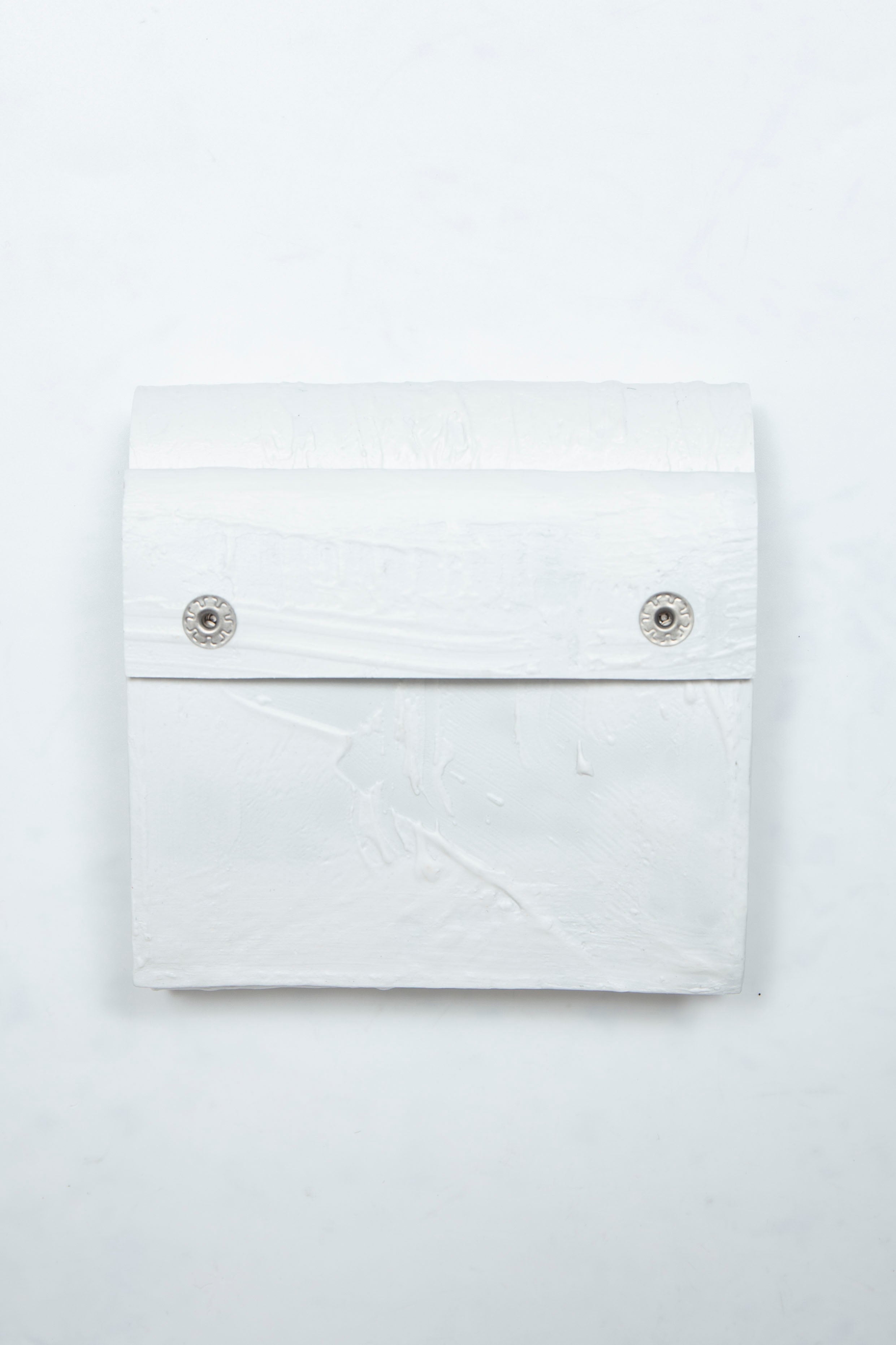 スナップボタン式の二つ折り財布。中はカード入れ、小銭入れ、マルチポケットのシンプルなデザイン。