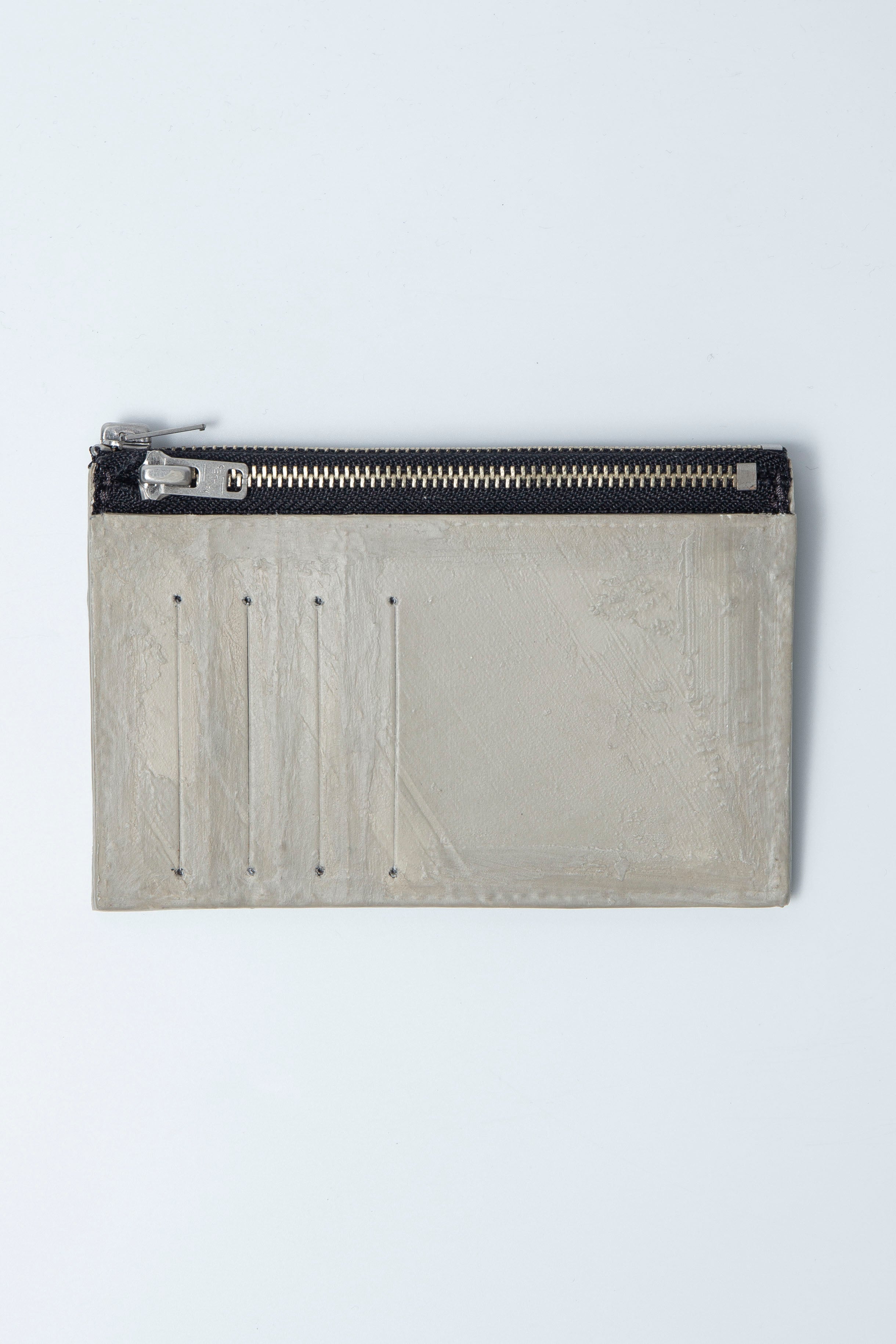カードポケットを表に配した財布。オモテ面にカードポケット4つ、ファスナー付きポケット、ファスナー仕様の財布部分と、一枚でスリムに仕上げた機能的なアイテム。