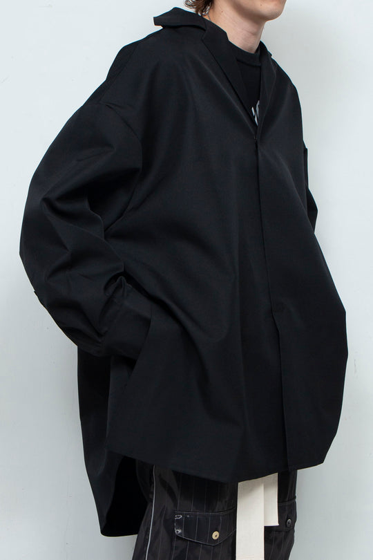 ミニマルなデザインのビッグシャツ。開襟仕様のロング丈で、シャツとしてはもちろん、アウターとしても着用いただけます。