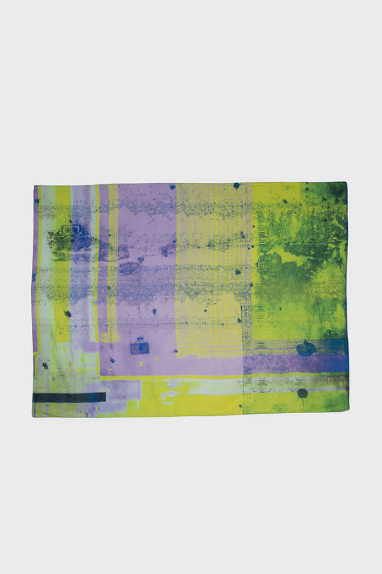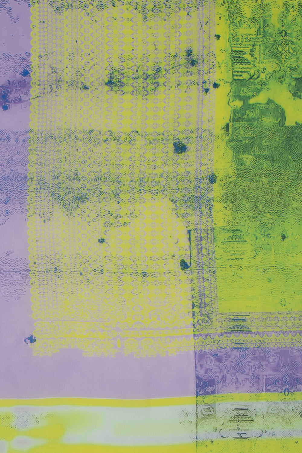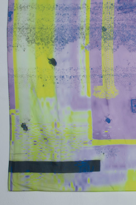 カガリユウスケが撮影した壁写真の中から厳選したものを転写プリントした壁布シリーズ。こちらは写真を、アーティストUcNv がグリッチ化(信号の出力と入力の間にバグを発生させ、本来の画像とは別の画像を描き出す現象。)したグラフィック。