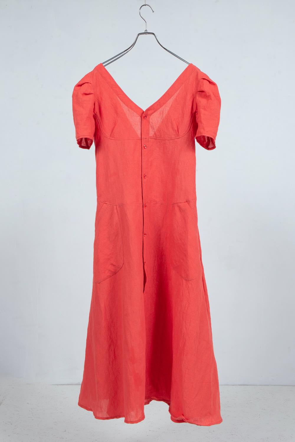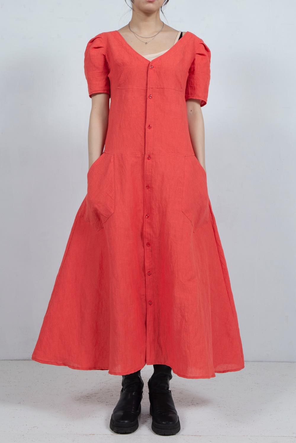 地図の形をシーチングに写し立体裁断で制作したワンピース。コットンリネンのサラッとした印象に反して独特な切り替え線のコントラストが特徴的。前後を入れ替えて着ることも出来ます。